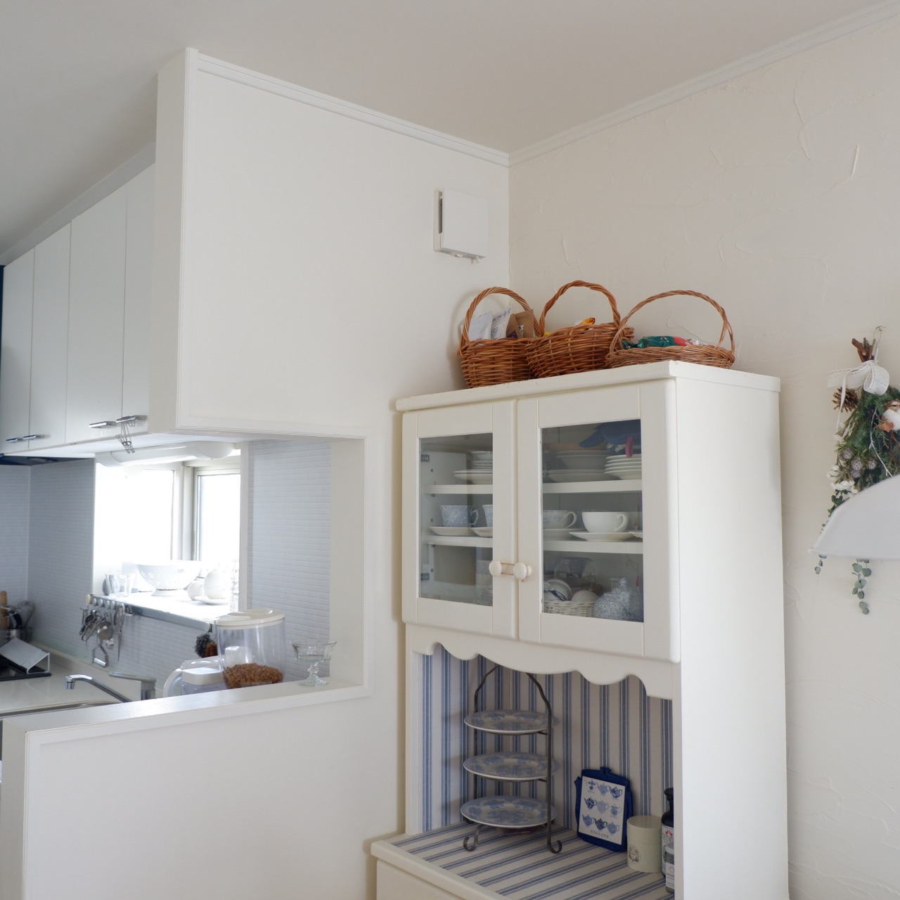 ティーカップを収納しているカップボード(家具)の上部に