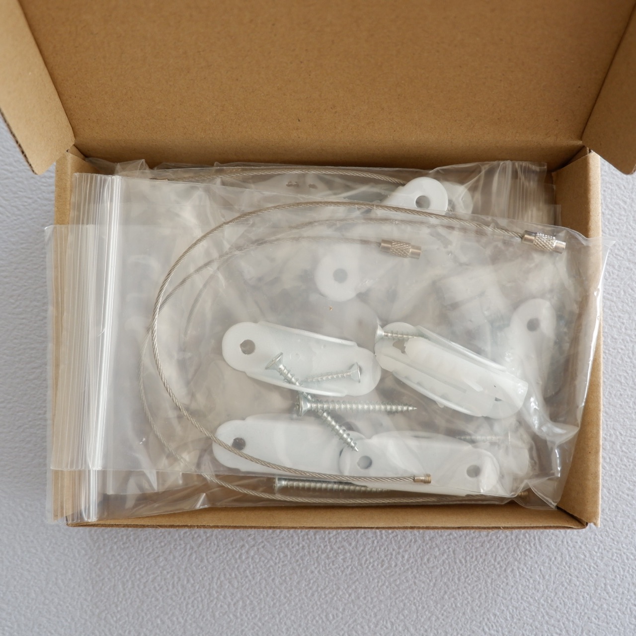 【素材&サイズ】鋼、ステンレス、ワイヤーロープ径1.5mm、長さ250mm、ワイヤーの最大耐荷重は200kg、6個セット。