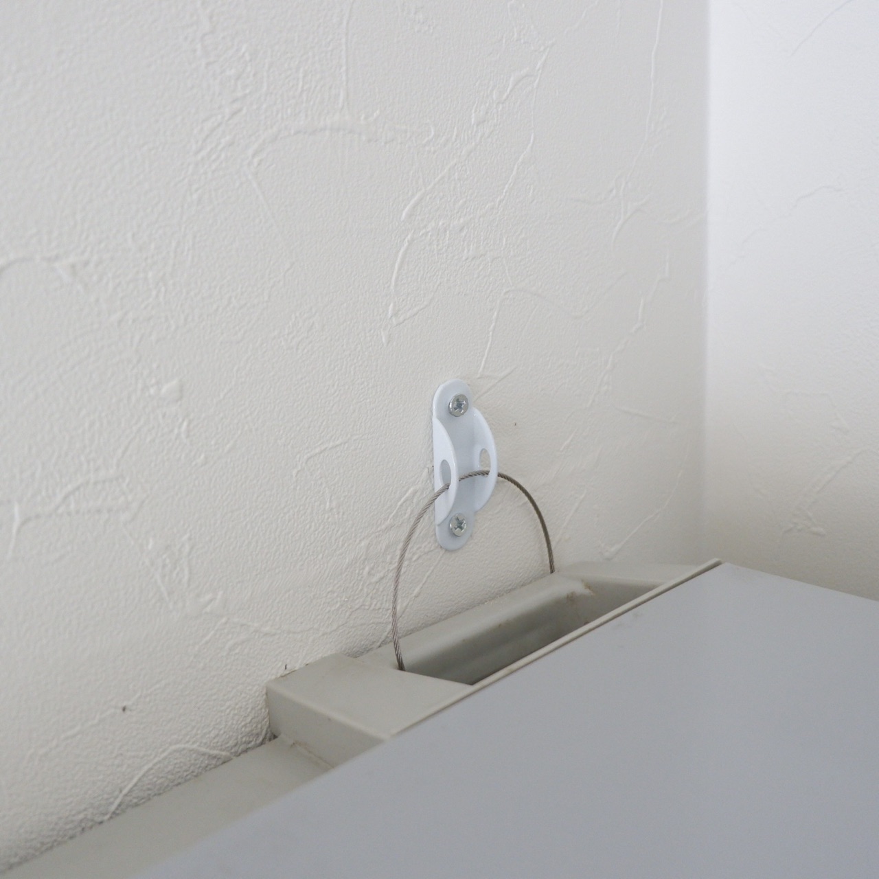 長いネジが入らず、短いネジで家具と壁の固定をしました。