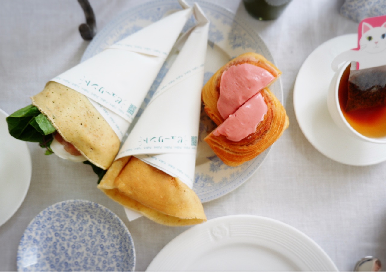 サンドイッチの代わりにシナモンロール桜も下段に並べて。