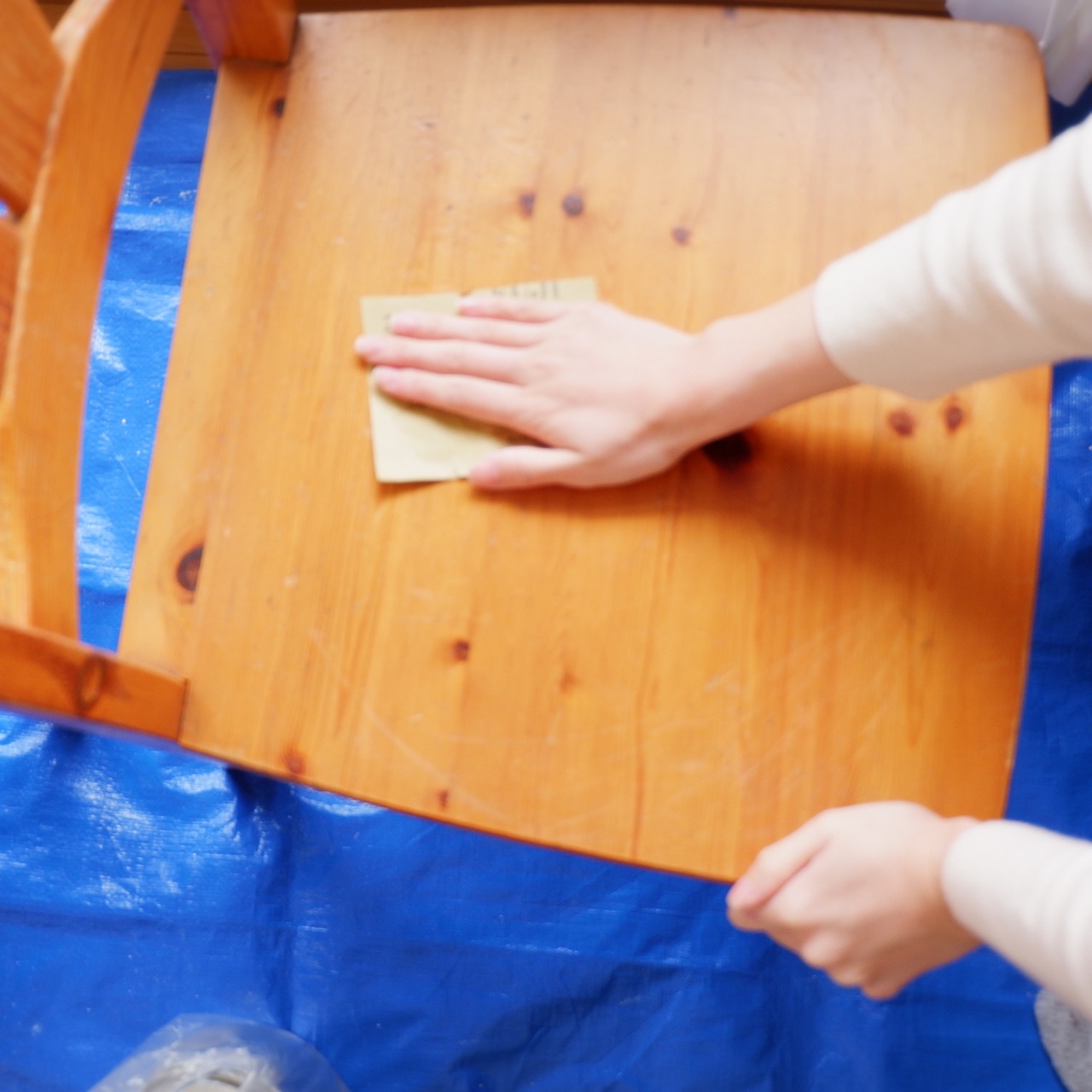 サンダーで削ったダイニングテーブルと並べるとこんな風。