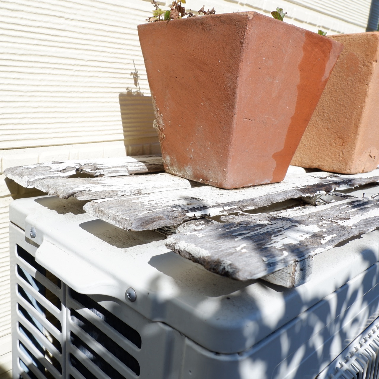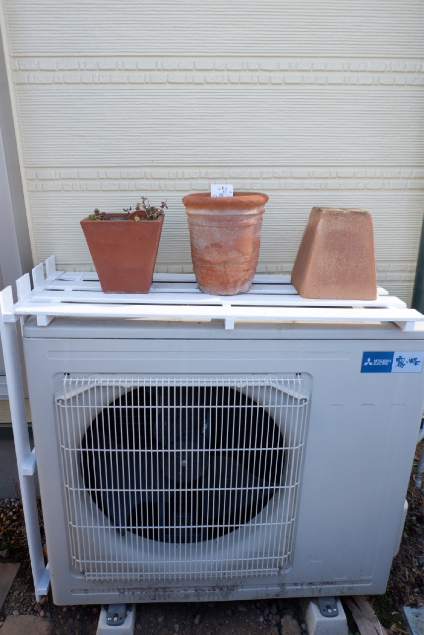 室外機カバーにペンキ塗りしたすのこを載せるだけ^^;