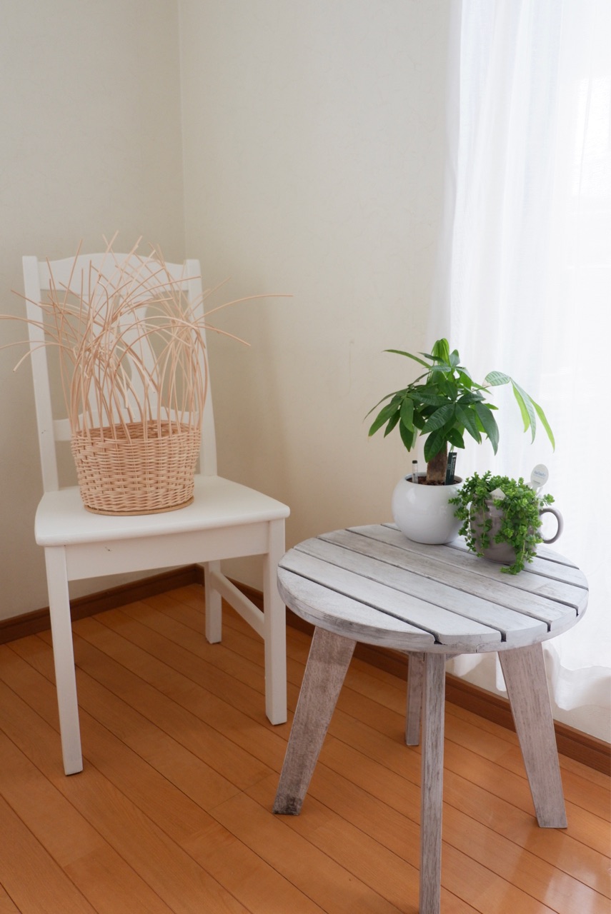 先日、娘が古いイスにペンキ塗りをしました。