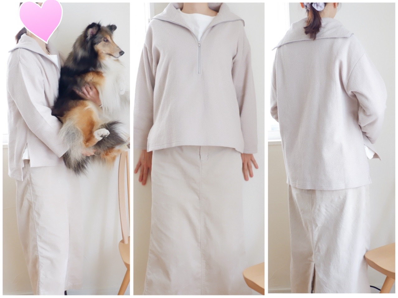 ✔お腹周りがもたつかない、ハーフジッププルオーバーなこと◎