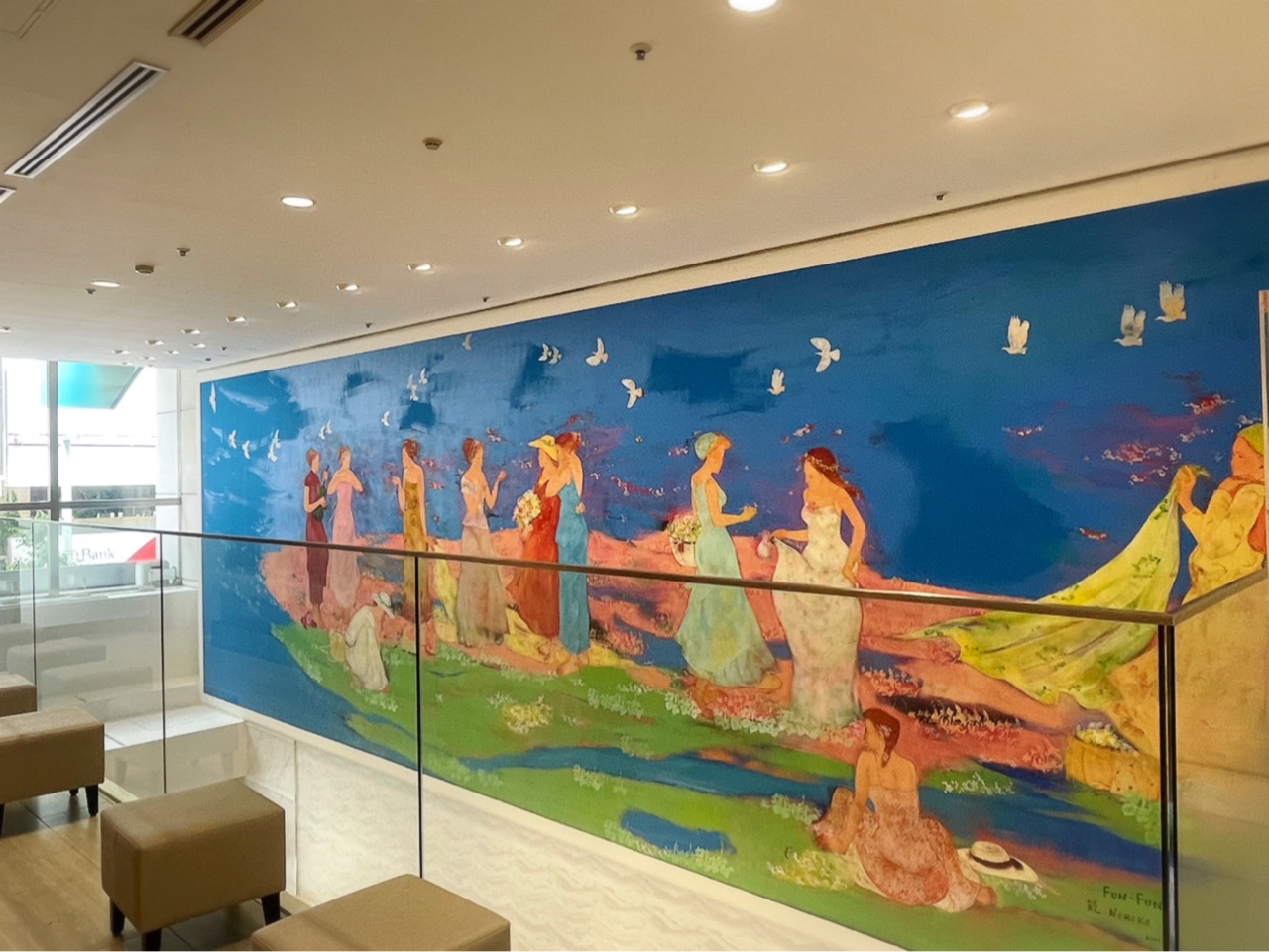ギャラリーとなっていてイスに腰かけて絵画をゆったりと愛でる空間になっています。