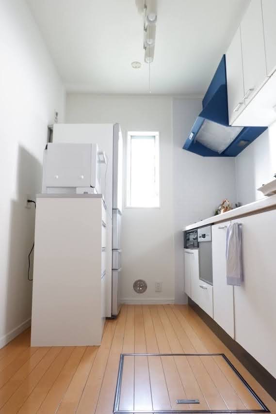 冷蔵庫と食器収納、その上にオーブンレンジを置いていました。