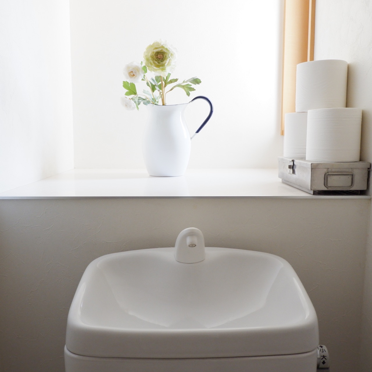 私は、便器に1つ、水受けに1つ。