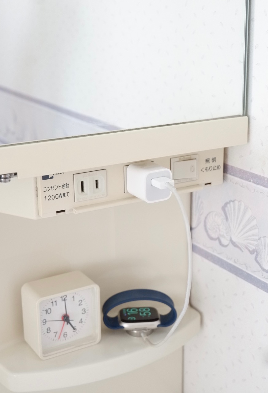 洗面台でApple Watchを充電しています^^