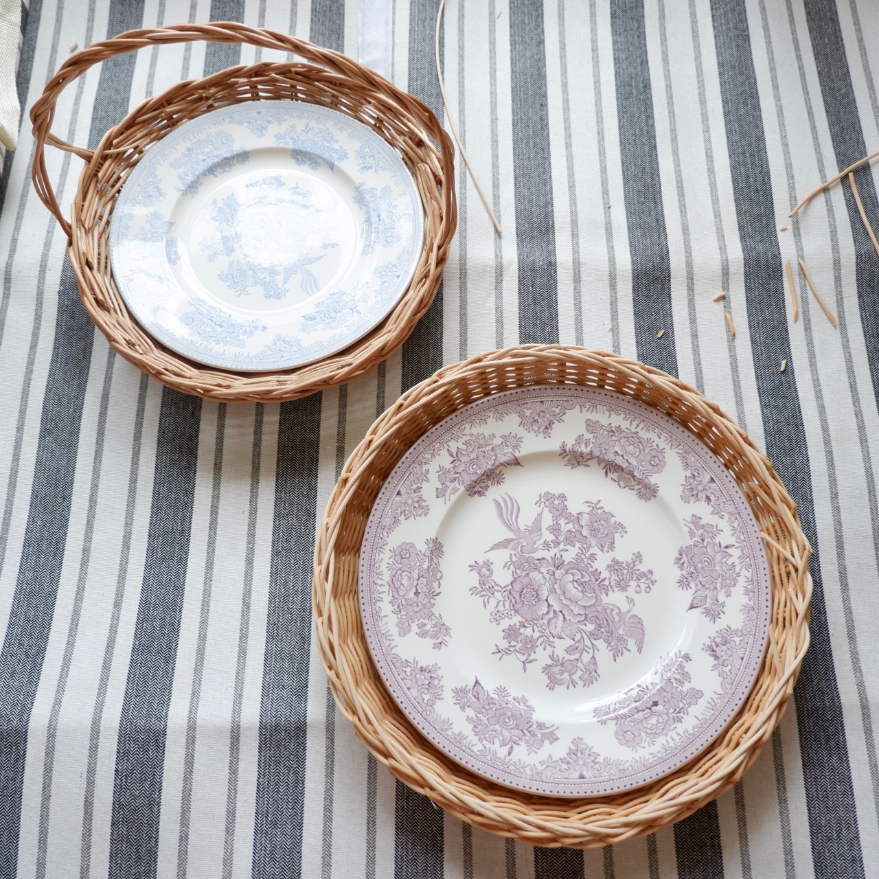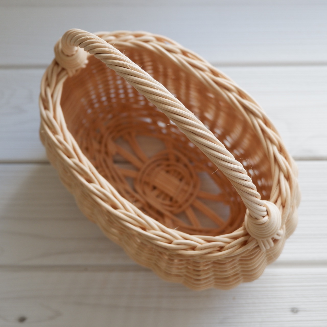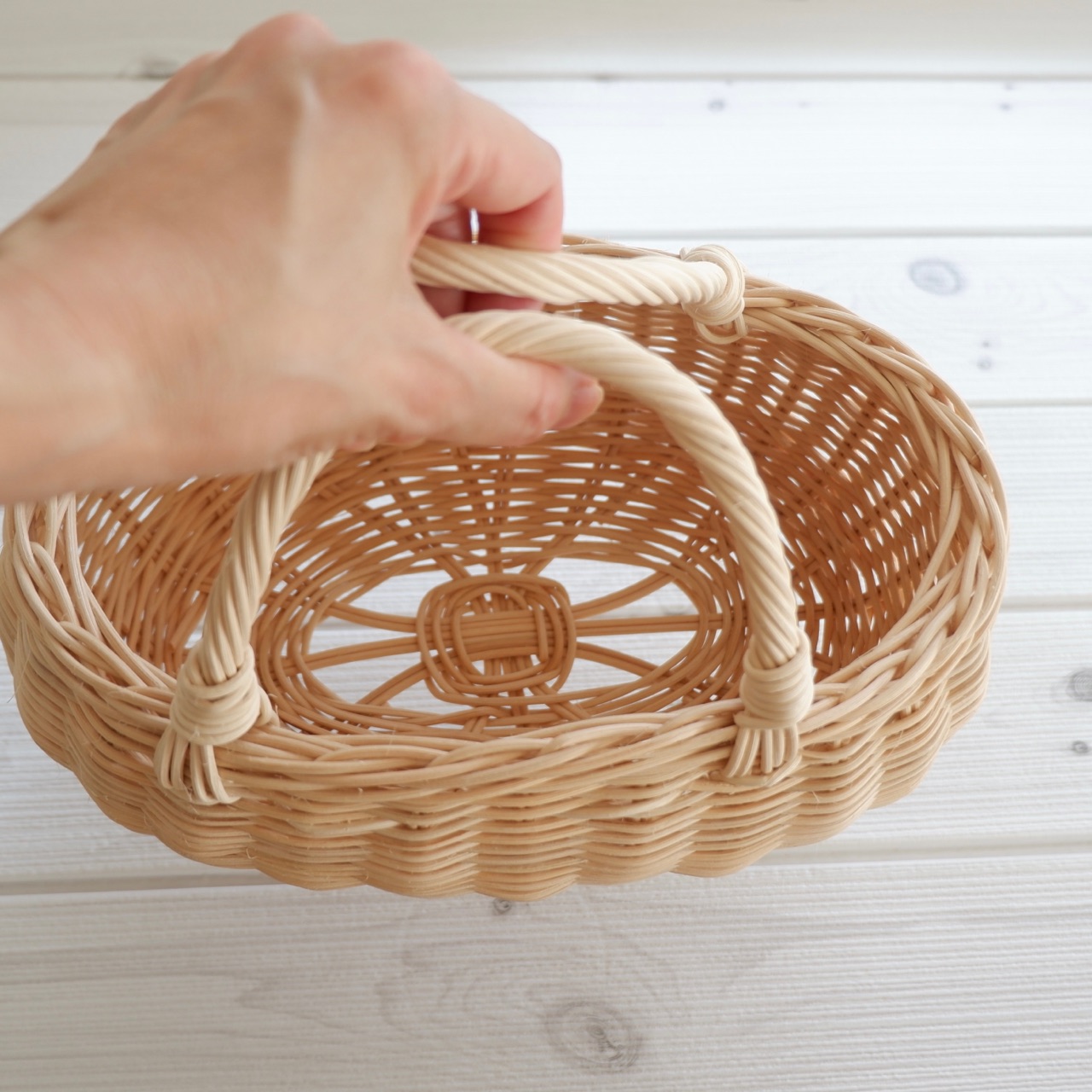 浅めでコロンとした形のプレート的なかごを編んでみました!