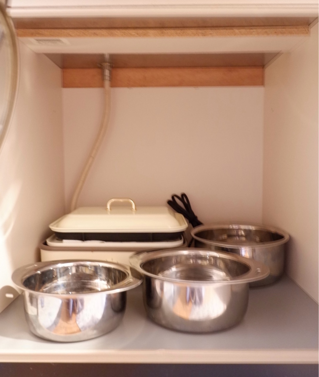 何も無くなったコンロ下は鍋を置くだけ収納。