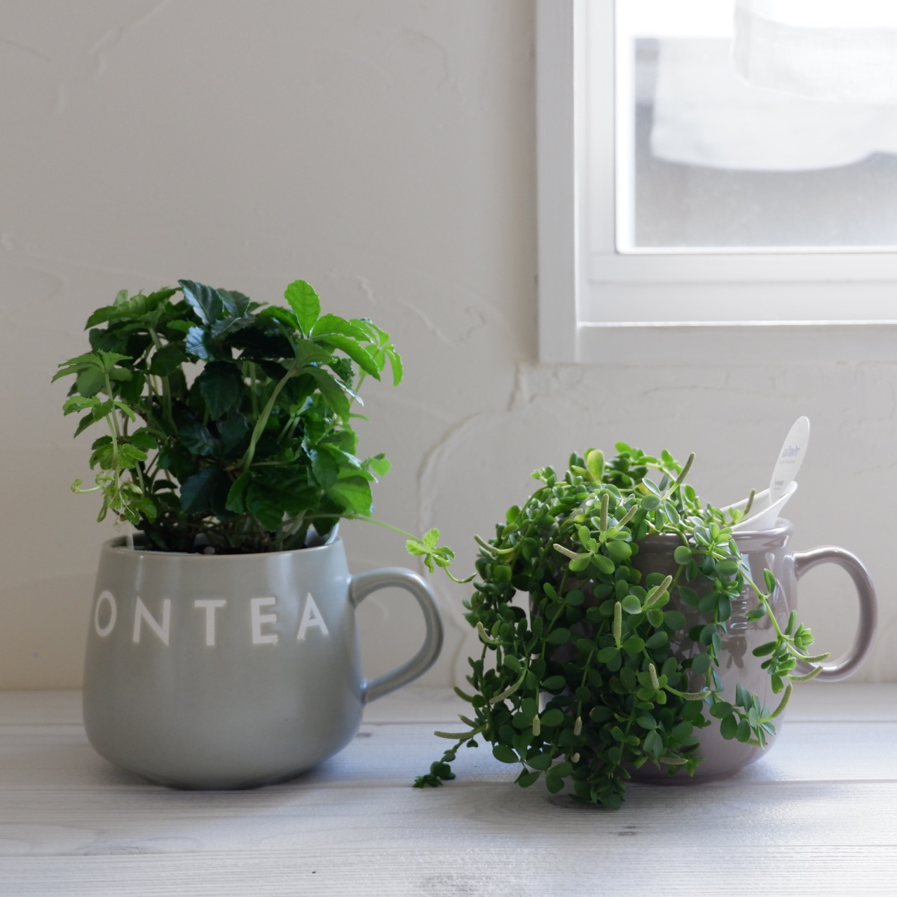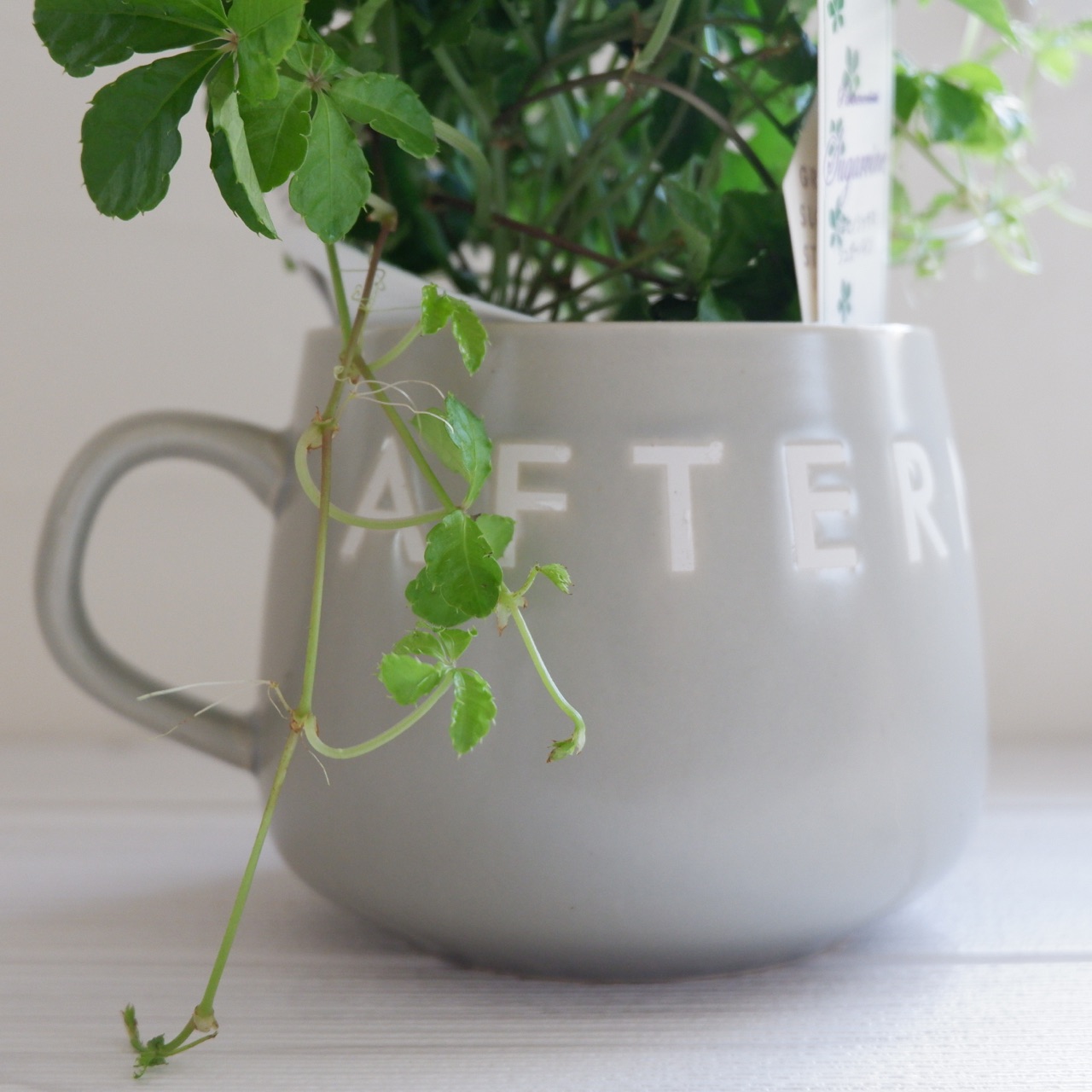 1年半前に買った、アフタヌーンティーのグリーンマグ(右)。