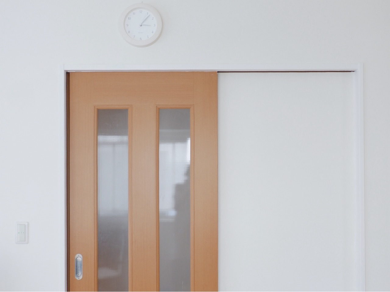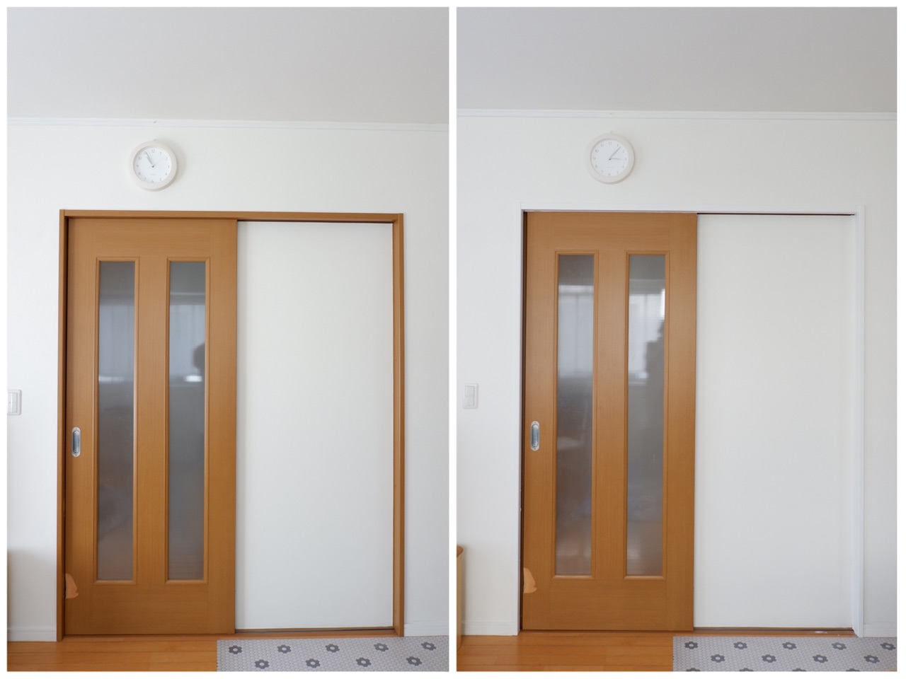 引き戸の左下は、猫がひっかいて犬がそれをかじって