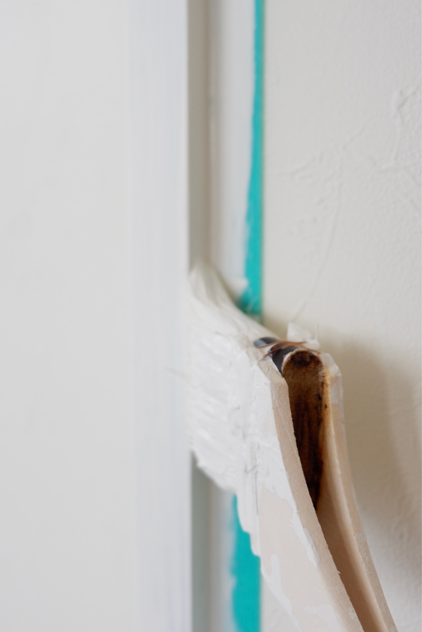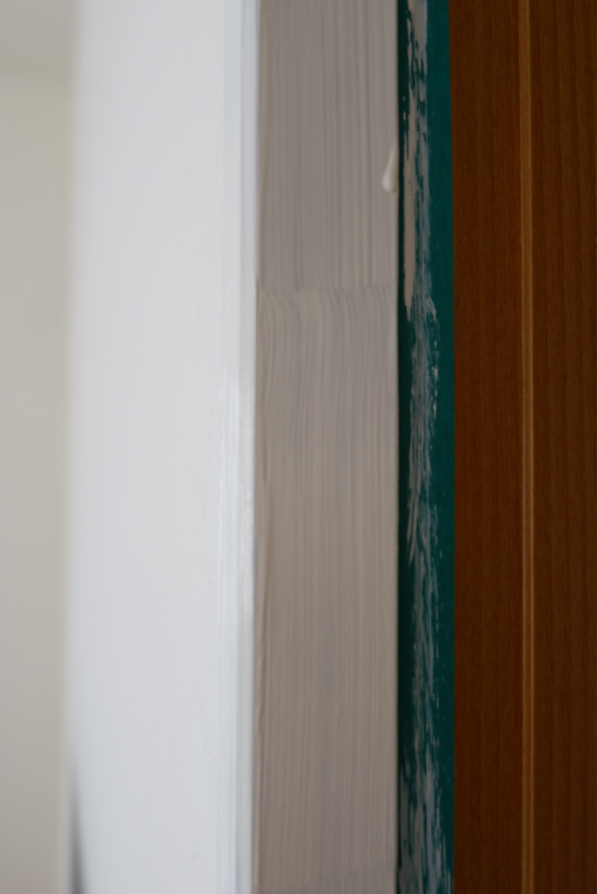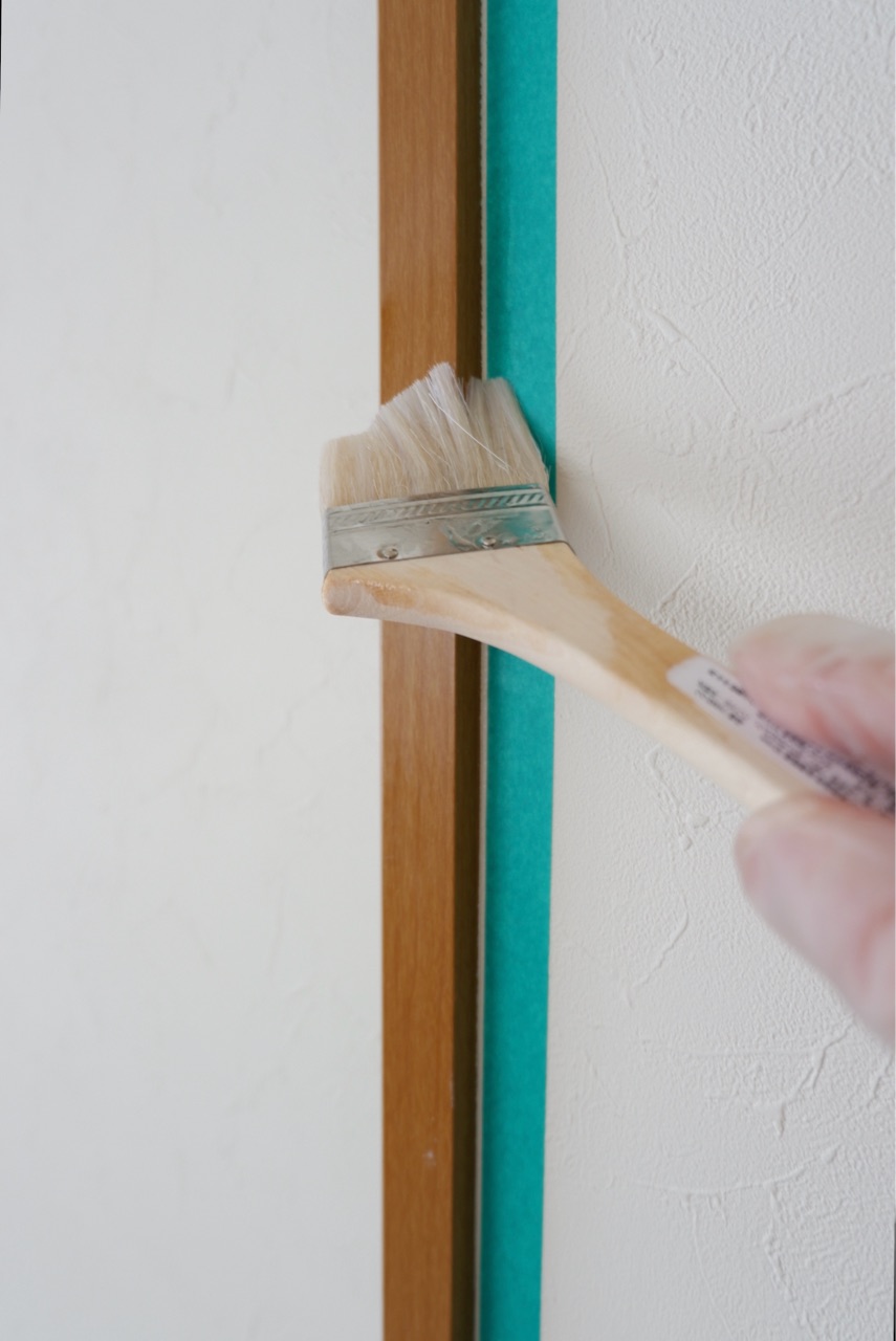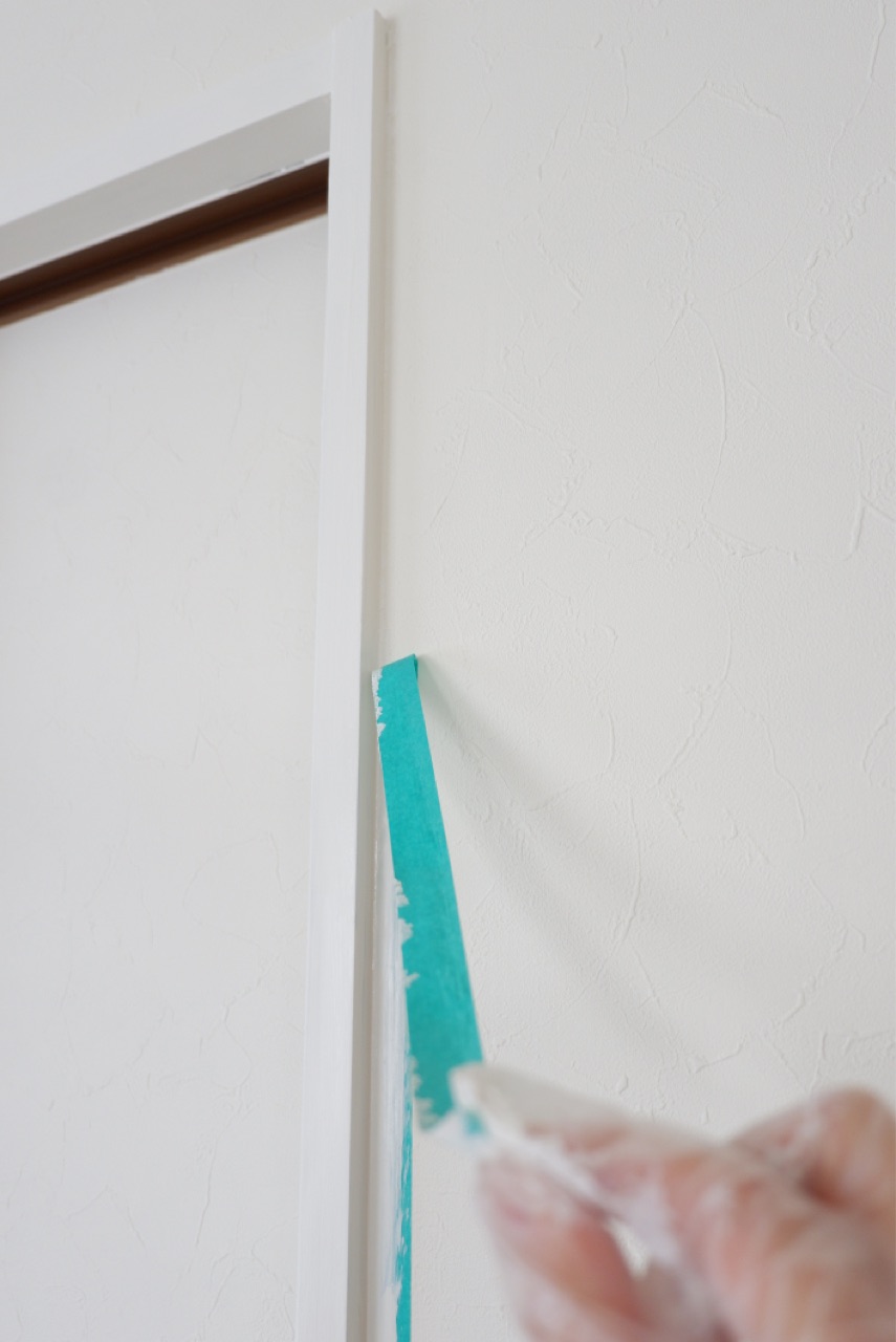 ❹ペンキを塗り終わったらすぐ、養生テープを外す。