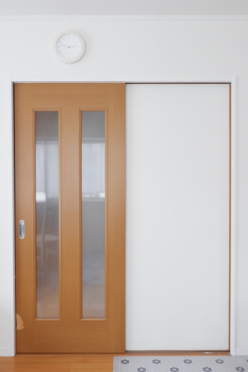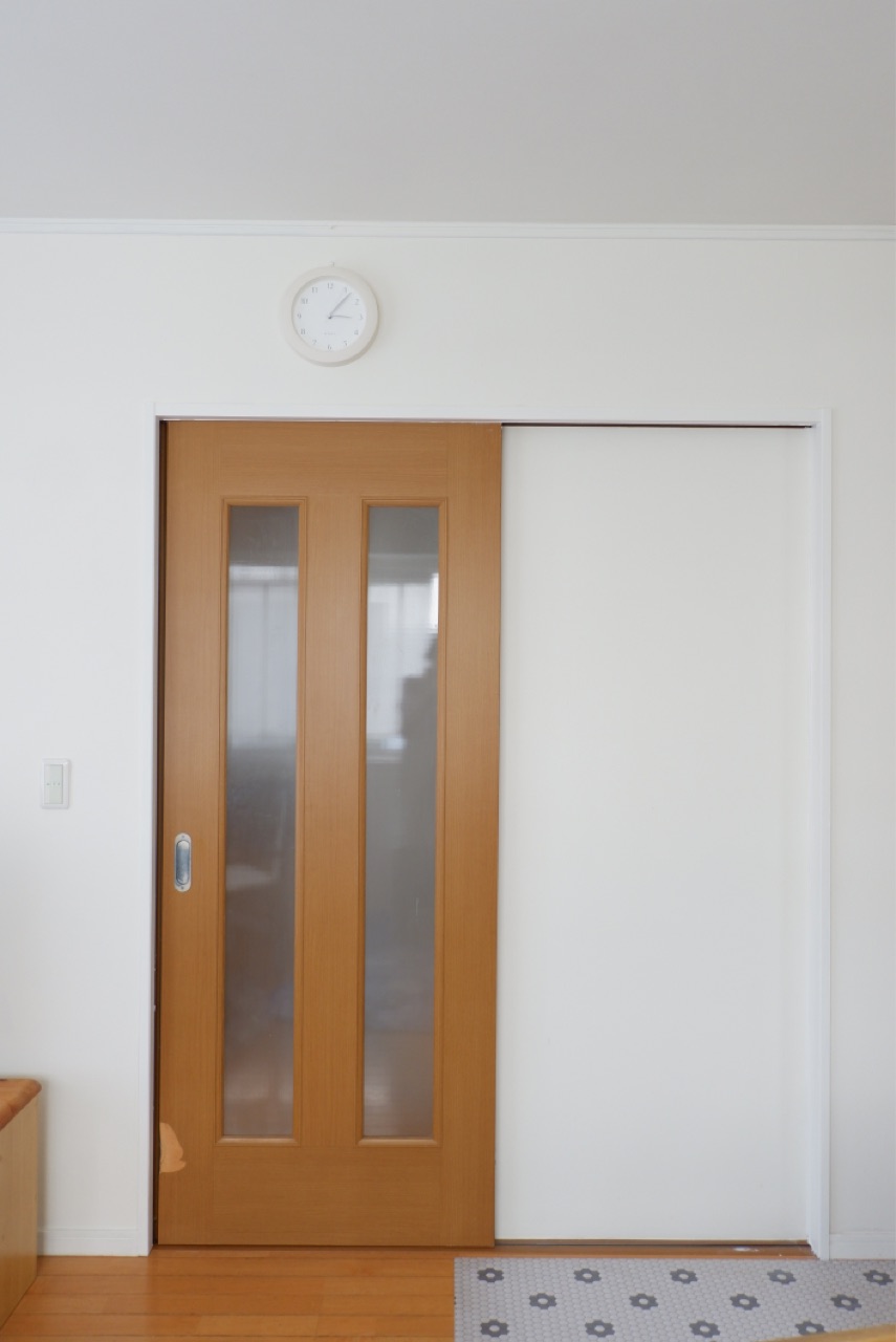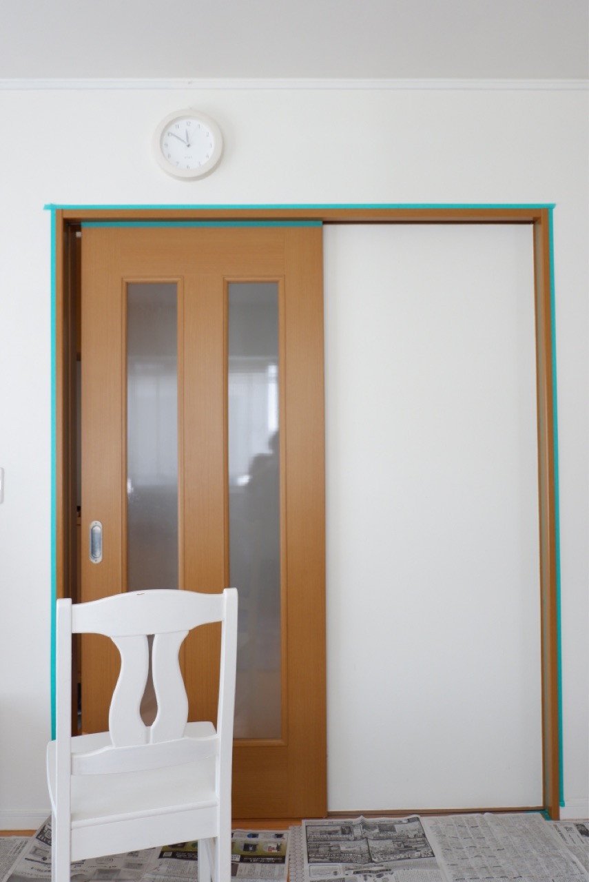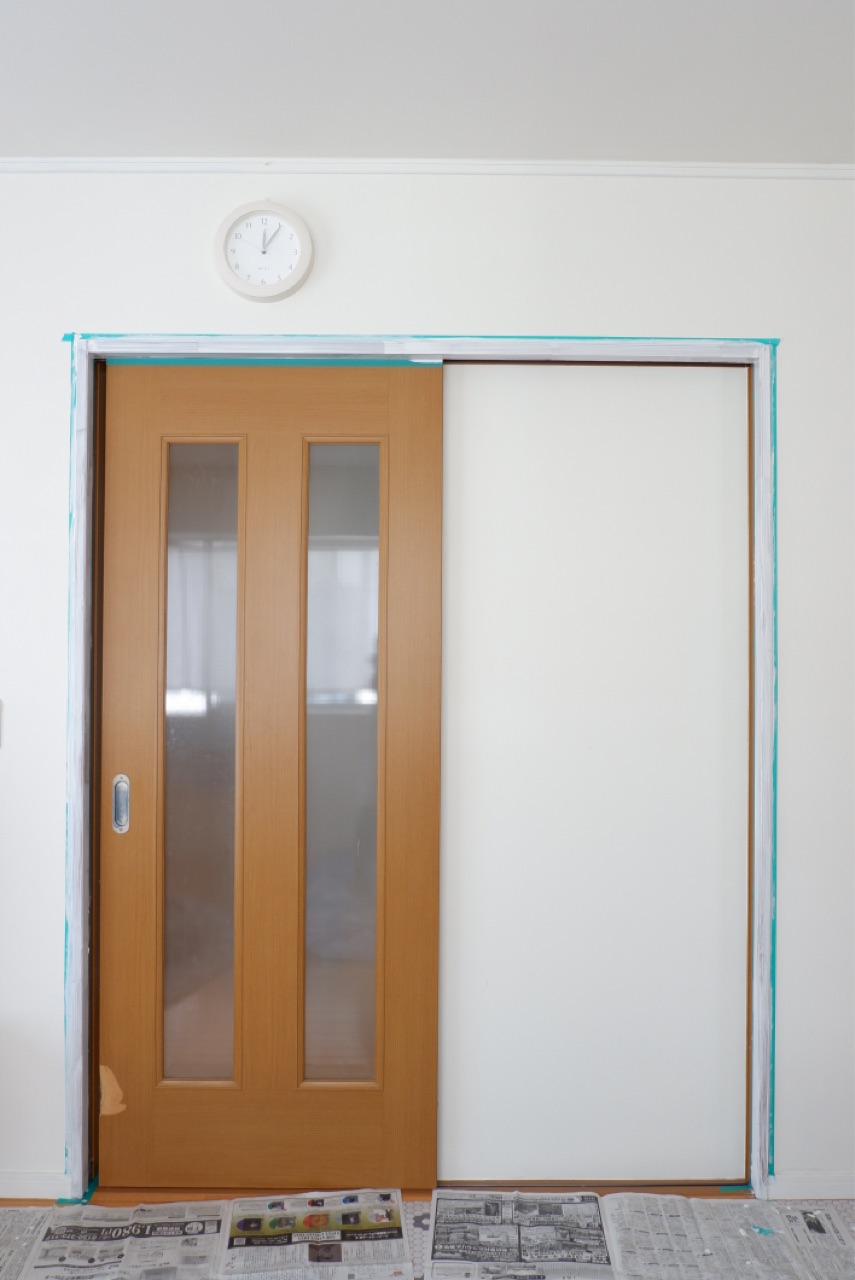 向こう側(廊下側)のドアや木枠にはペイントはしていません。