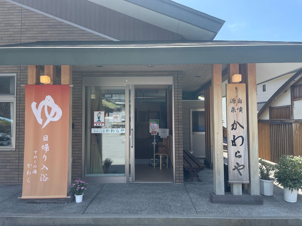新たな温泉を探して、今回はこちらの「すのこの湯かわらや」へ。