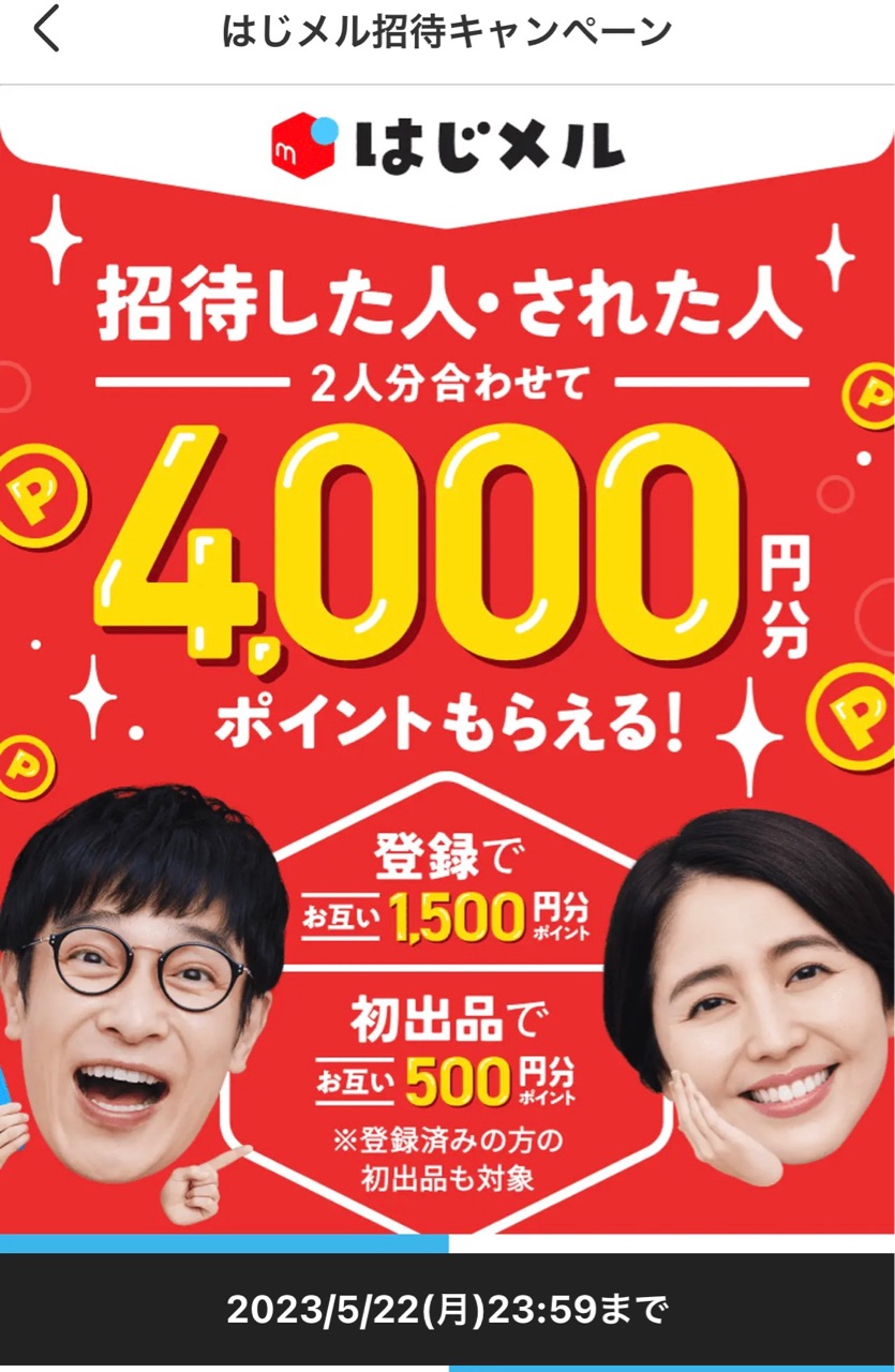 メルカリ・はじメル招待キャンペーン