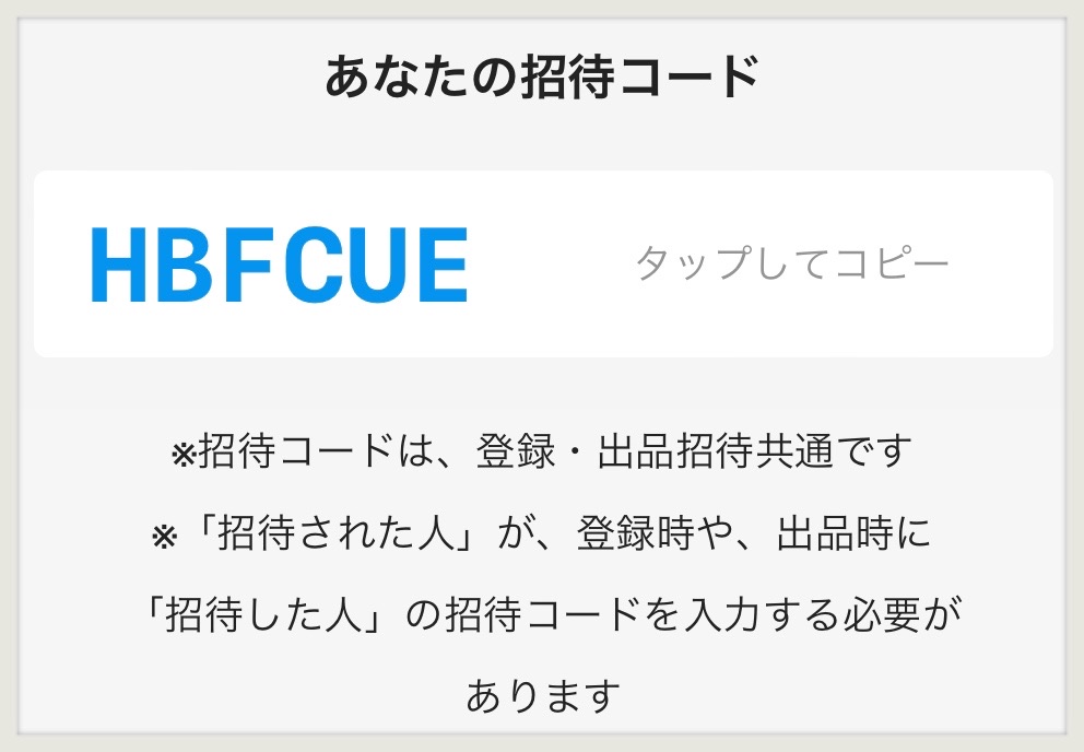 ちなみに私の招待コードはHBFCUEです!