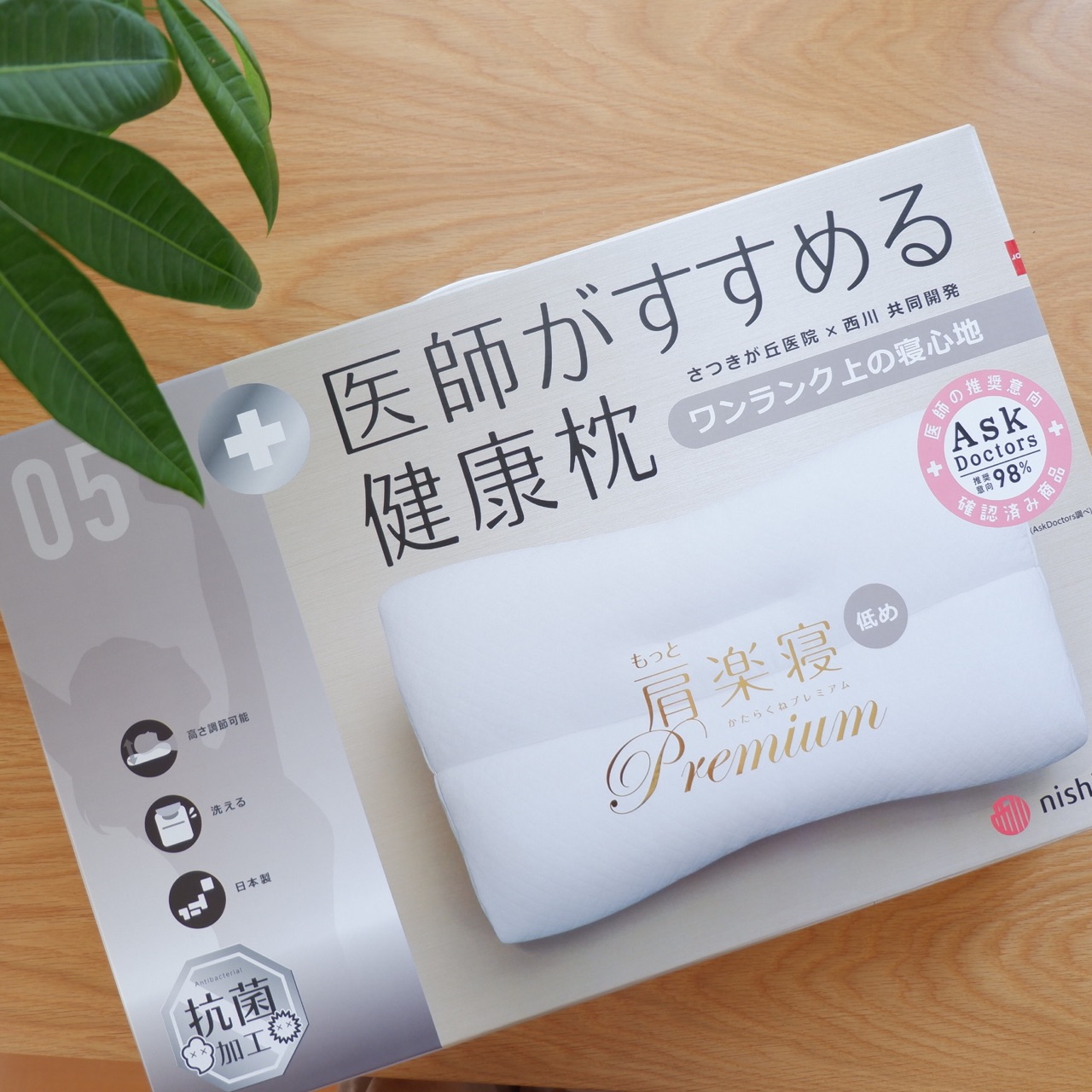医師がすすめる健康枕「もっと肩楽寝(低め)」プレミアム|nishikawa