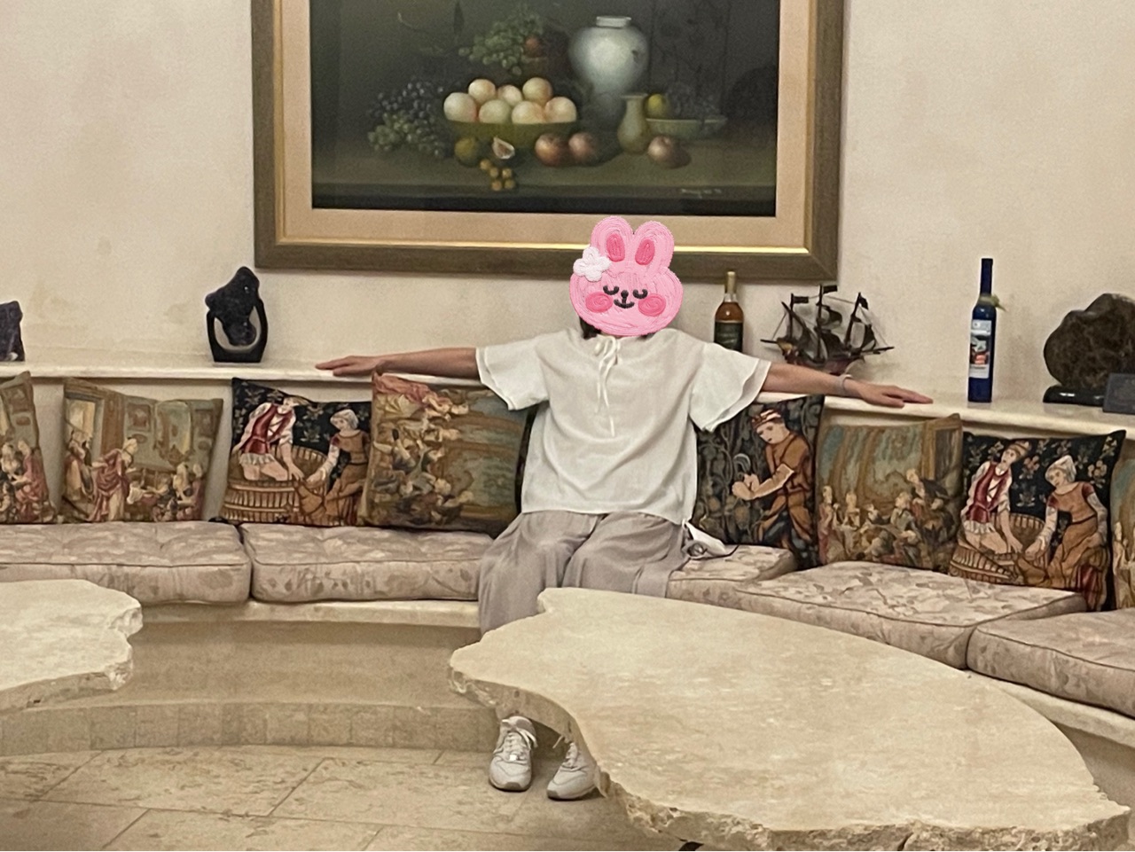 ラグジュアリーなソファに座って写真を撮ったりw