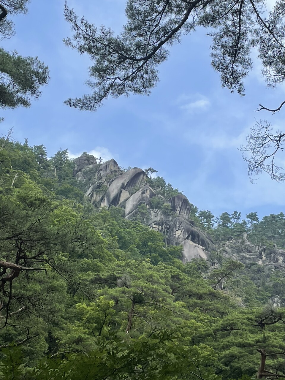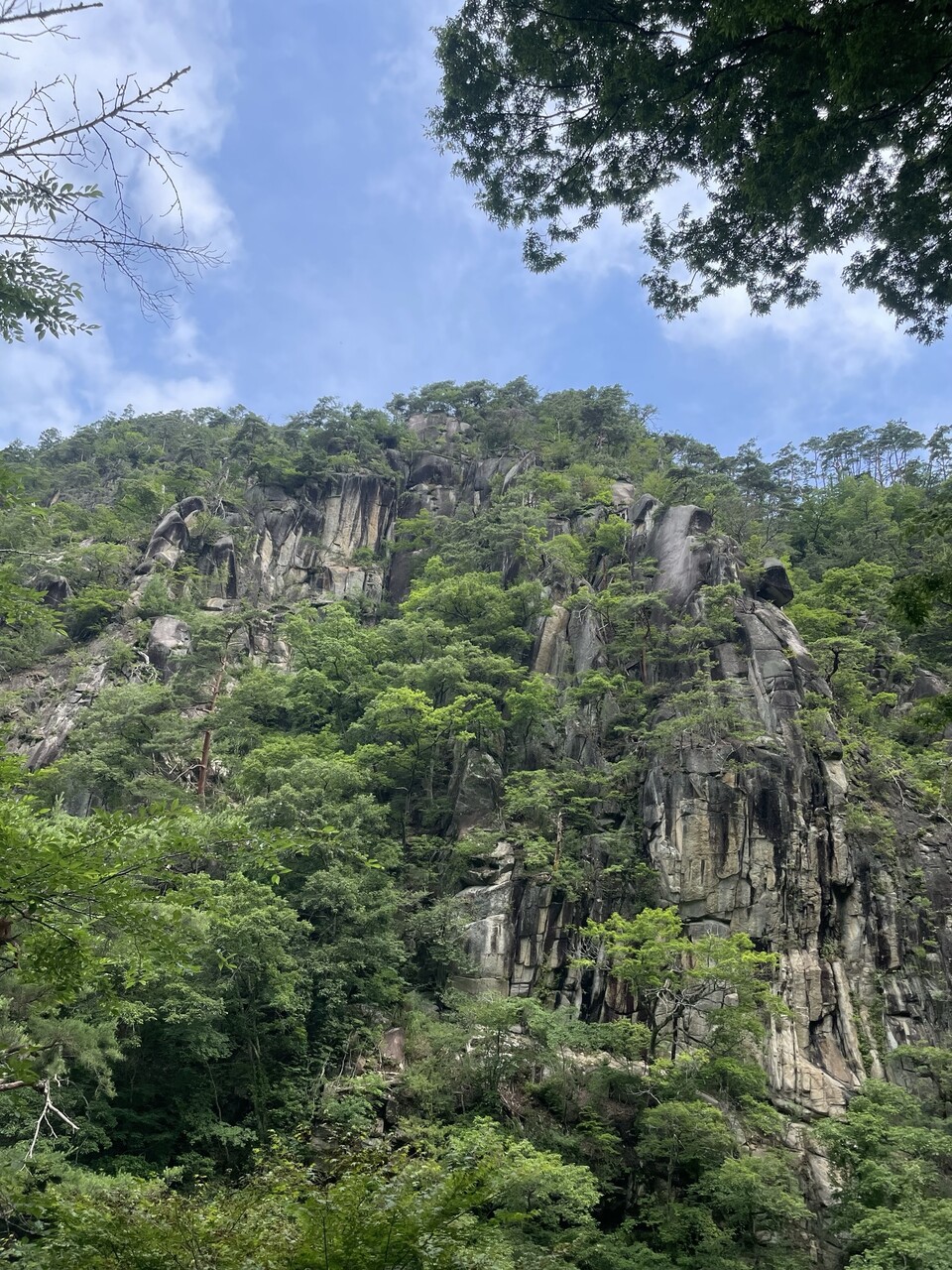 その上には岩肌が木々の隙間から見えます。
