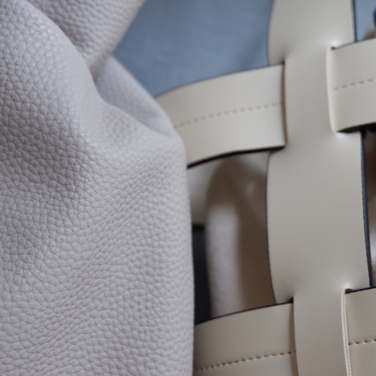 左がこのバッグです。本革と並べてみました。