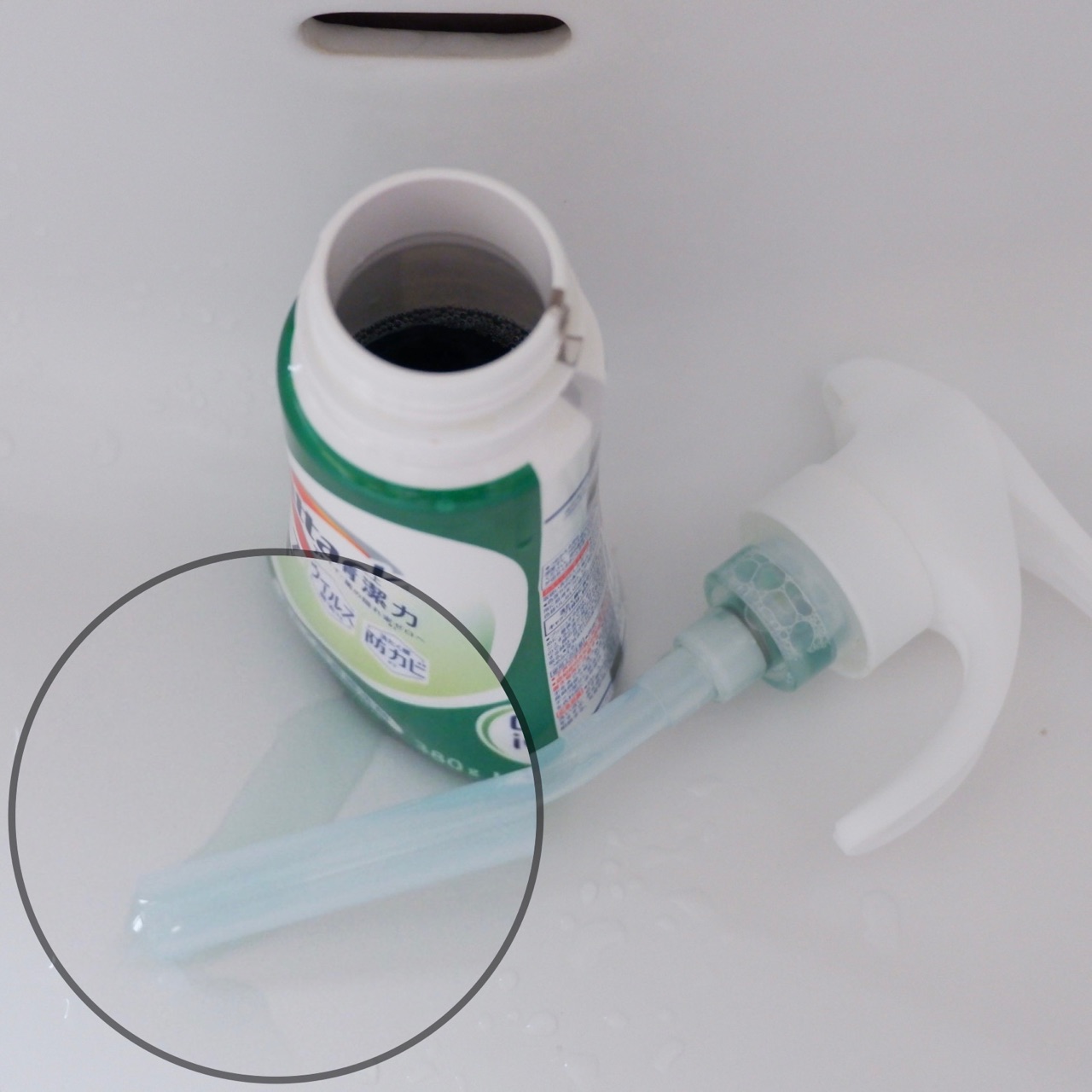 外したフタの洗剤が周りに付いてしまうこと。