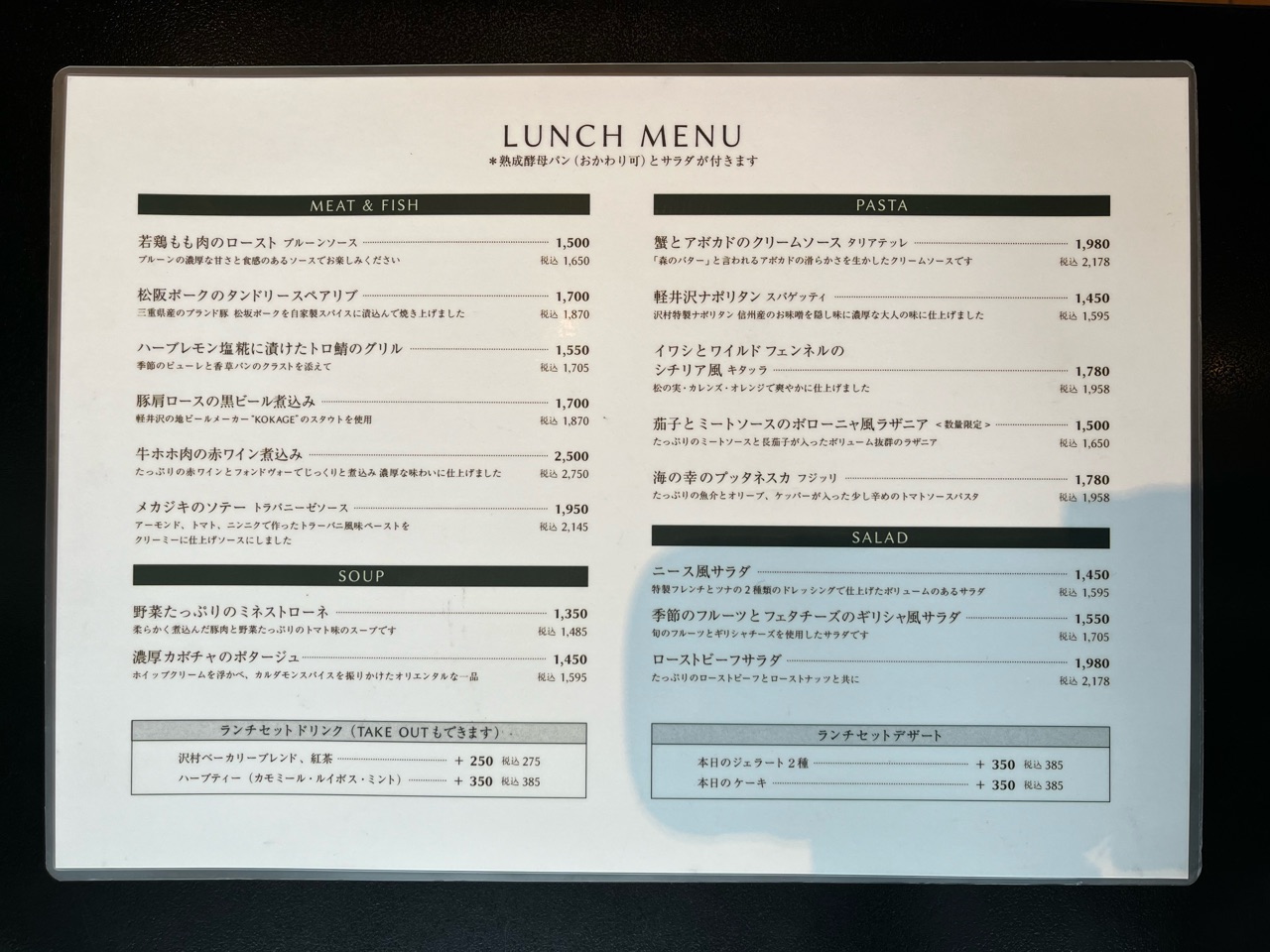 (メニュー表より抜粋)
