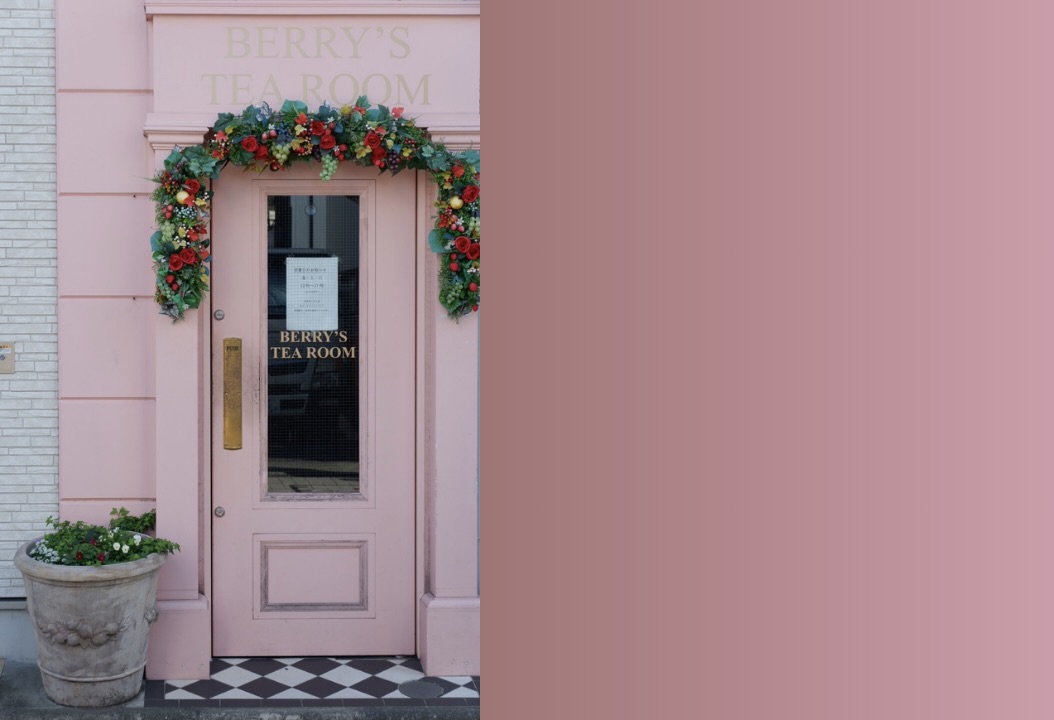 浜田山駅下車して数分のところにある可愛らしいピンクのドアが