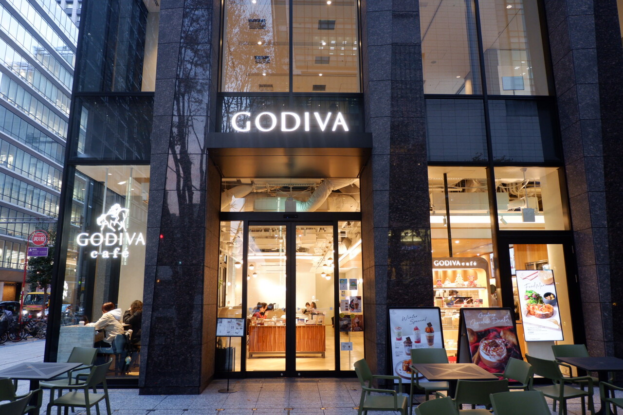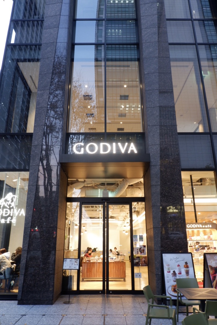 GODIVAのイメージのブラックできらびやかなビル1階に入っていて
