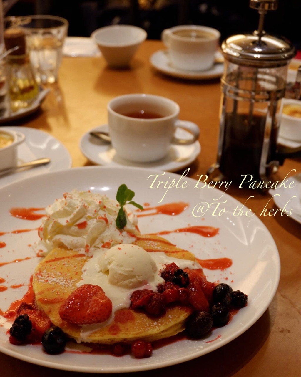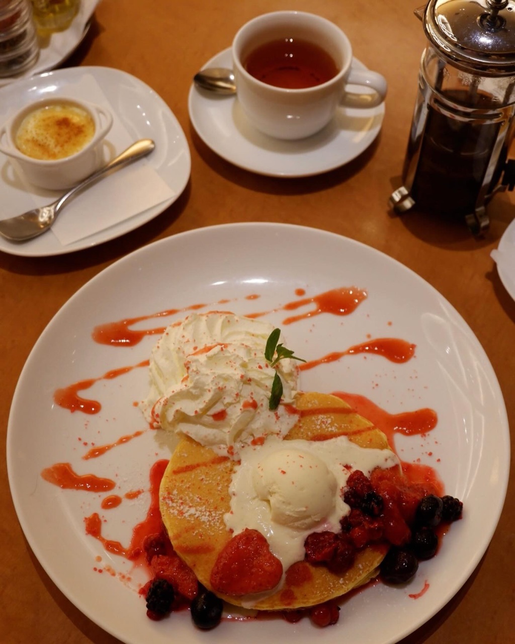 ベリーパンケーキを食べながら