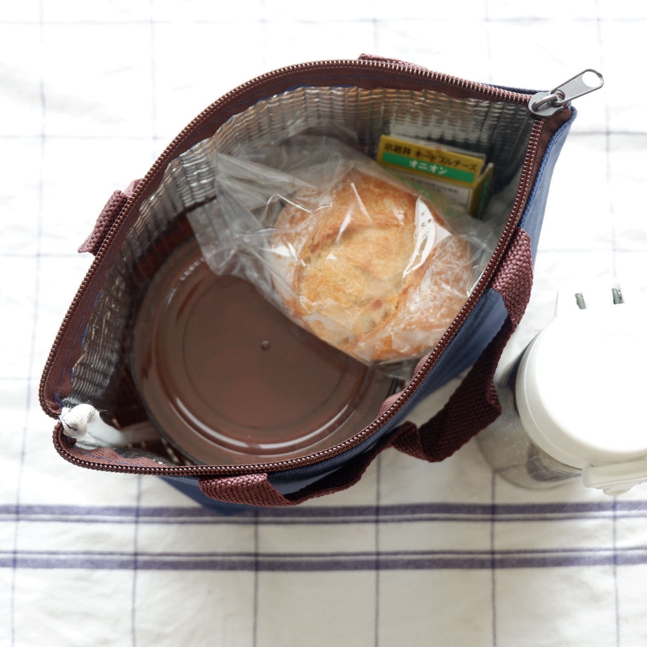 保冷バッグは100均ワッツで買ったネイビー色。