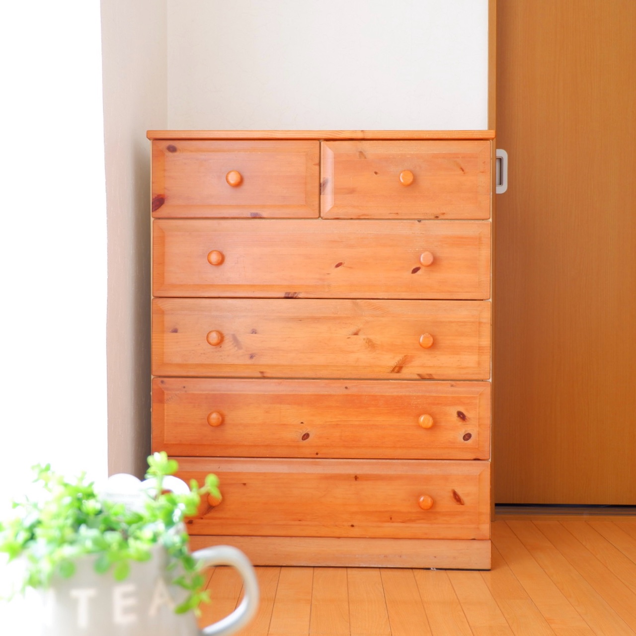 買ってから30年経つ、パイン材(表面だけ)の家具。