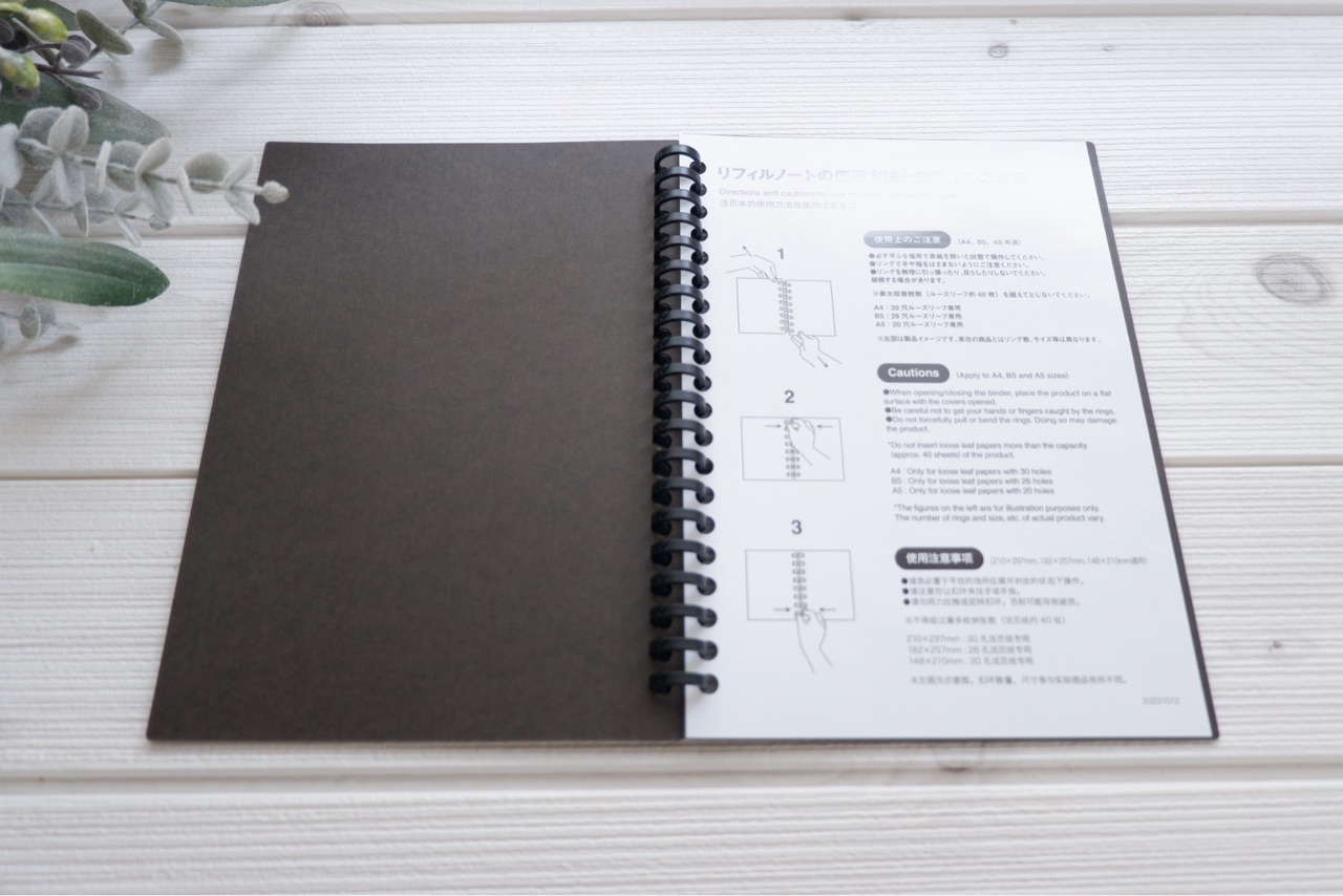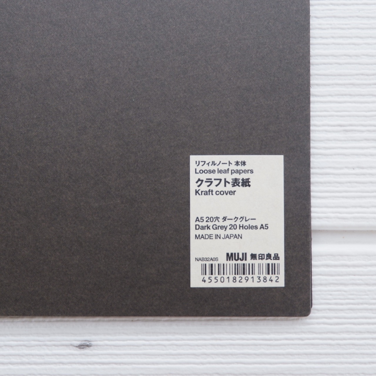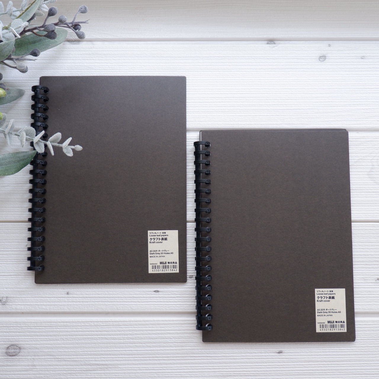 リフィルノート クラフト表紙A5 20穴 ダークグレー