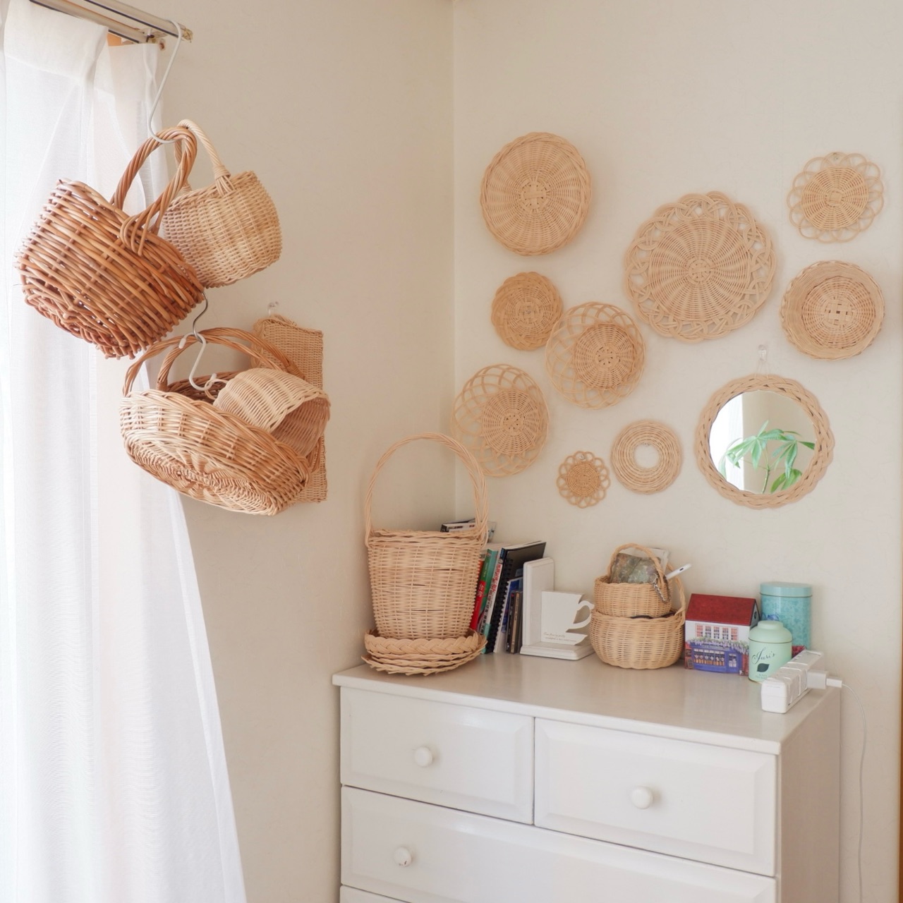 籐かごを壁に飾る方法