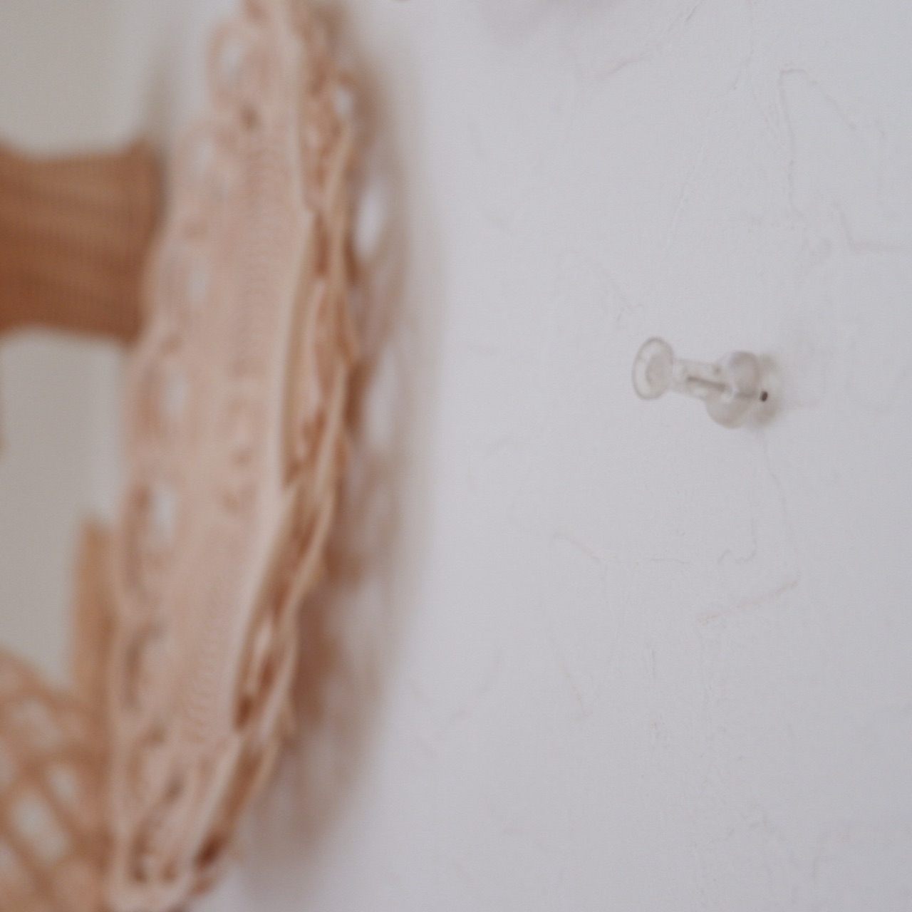 フック型画鋲に作品を掛けて