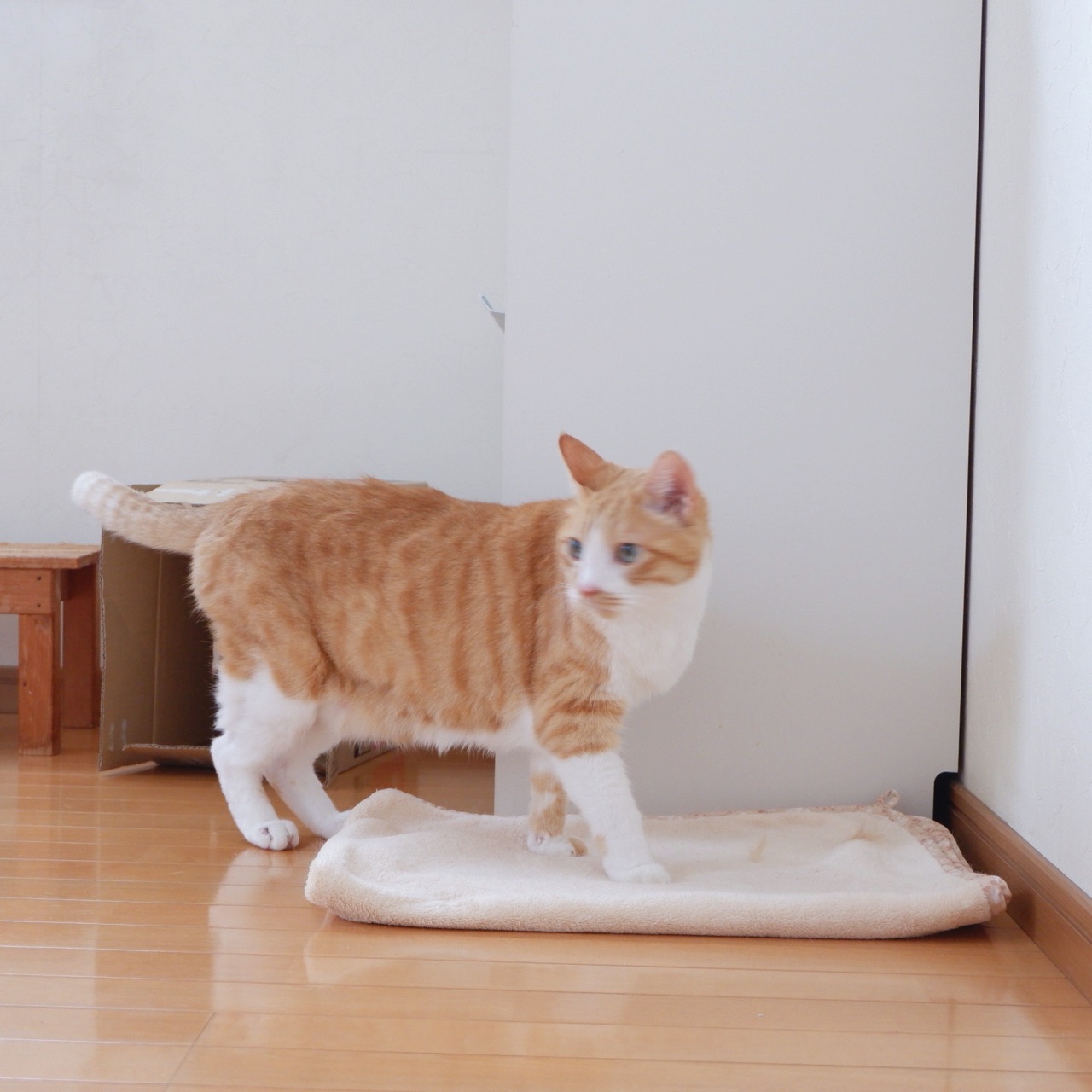 お昼寝シート(膝掛け)をパトロール🐈