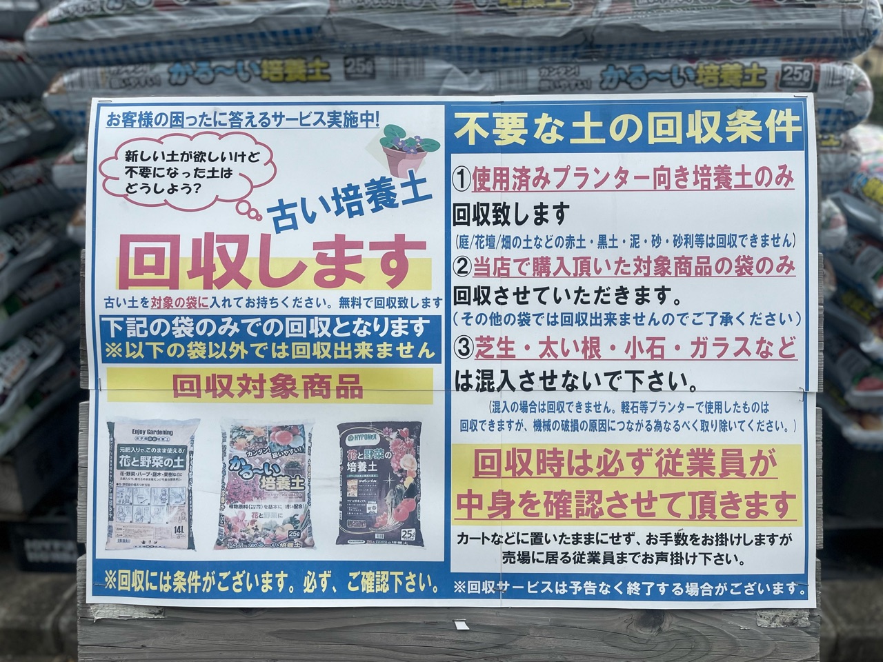 ✔︎ お店で買った対象商品の培養土の袋のみ回収