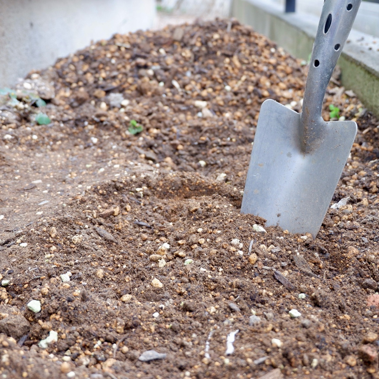 土をリサイクルするという補助土を混ぜてみたものの