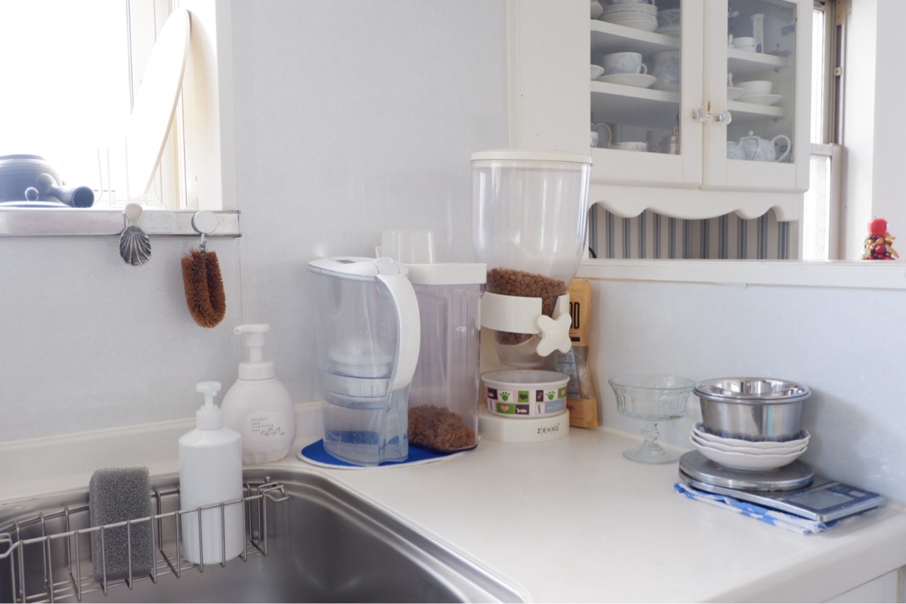 シンク右手が、ブリタとペットフード置き場。