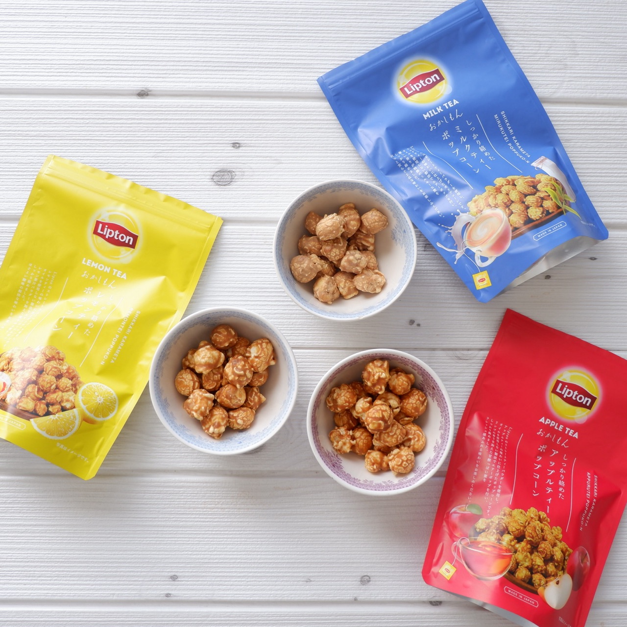 アップルティーポップコーンは、リプトンのアップルティーの味で