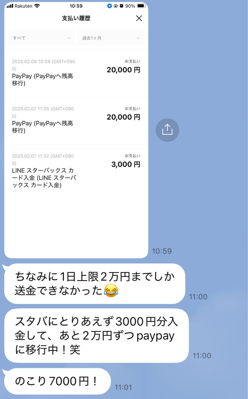 娘、LINE Pay残高数万円あるとは😳