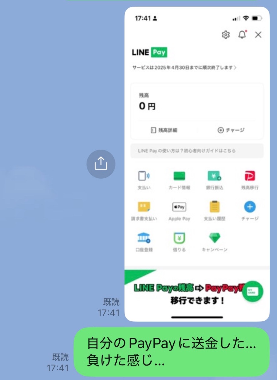 LINE Payの残高ゼロになりました👍