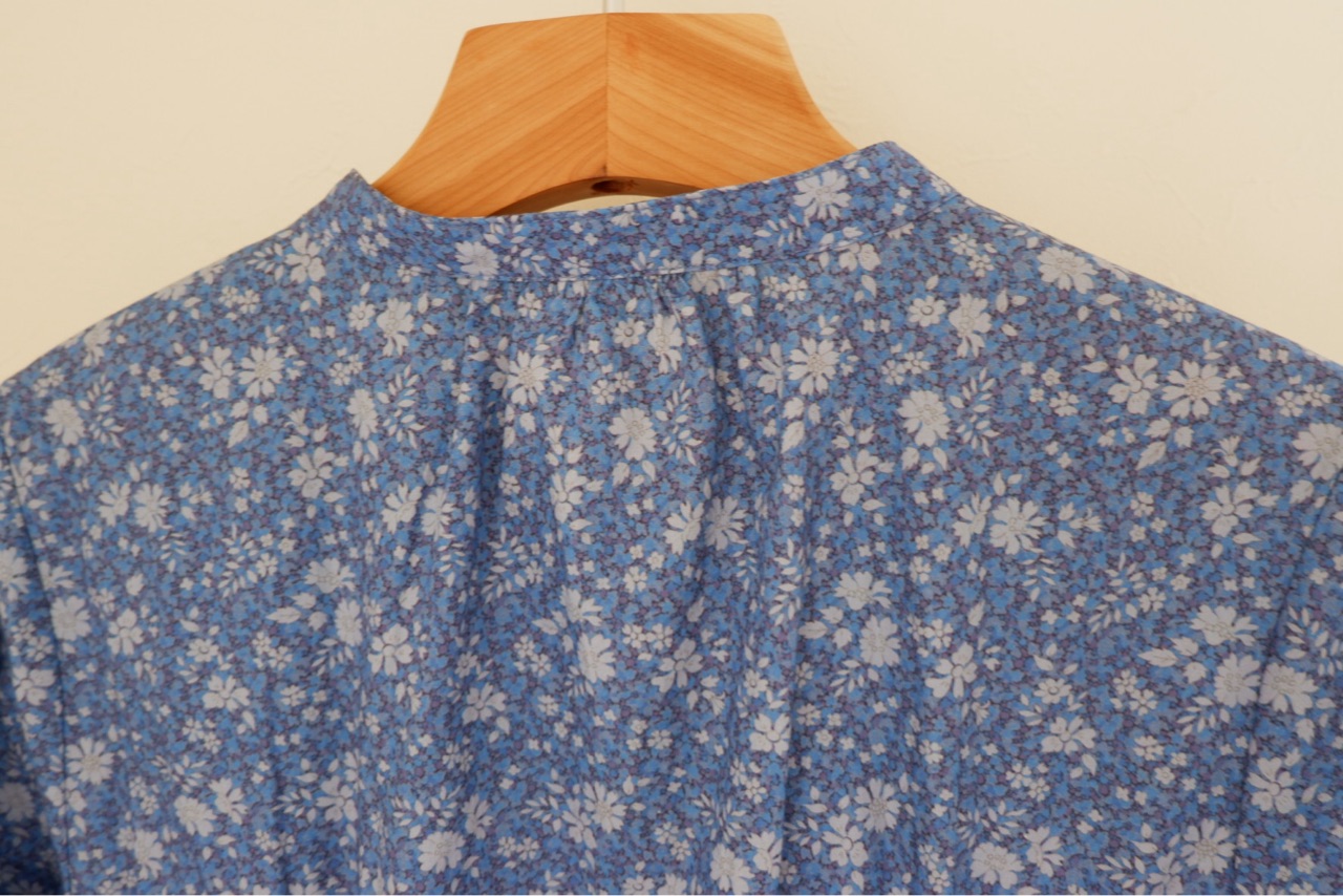 リバティプリントの「CapelPepper(カペル・ペッパー)」をあしらったシャツワンピースです。