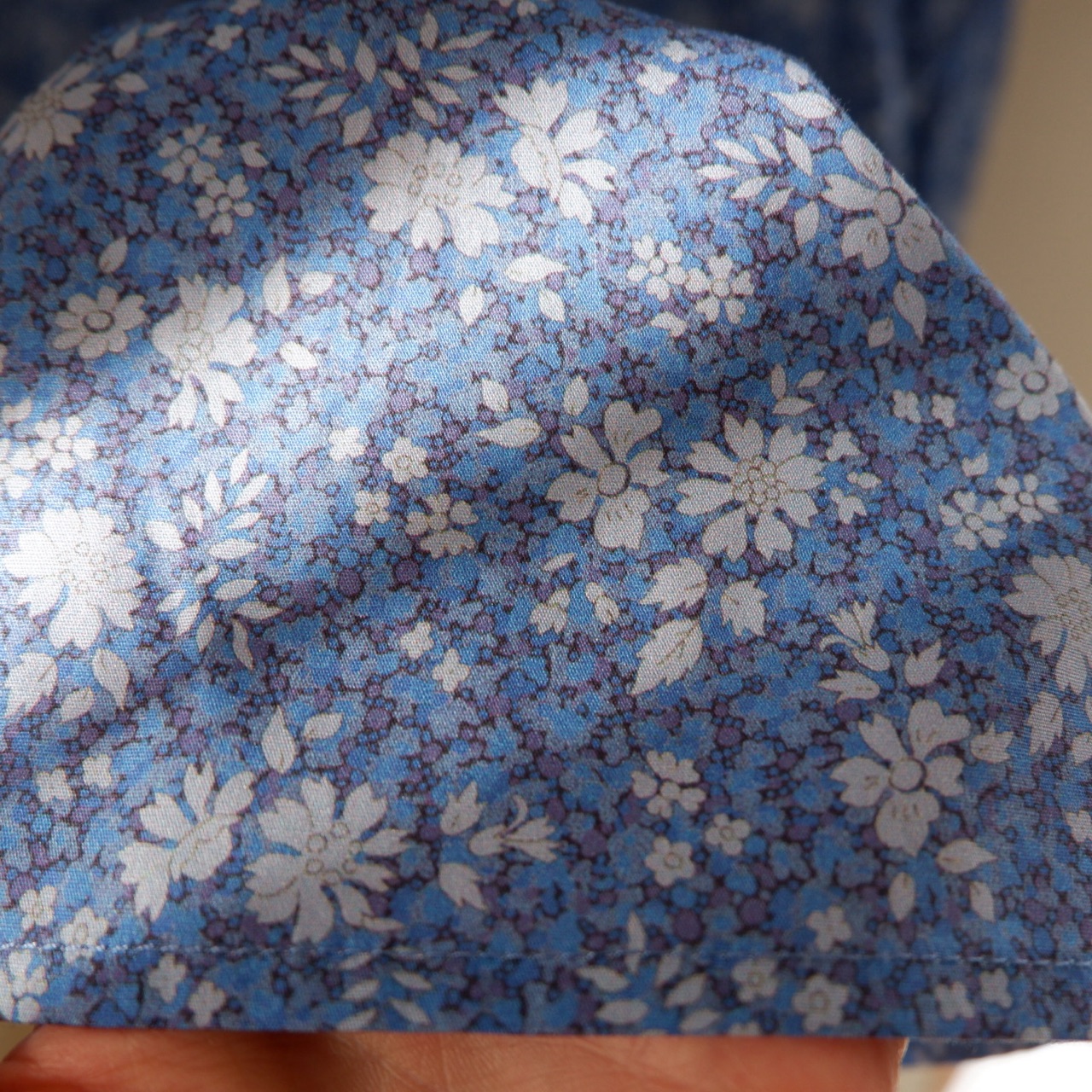 リバティプリントの「カペル」と「ペッパー」というアイコニックな定番柄が融合しています。