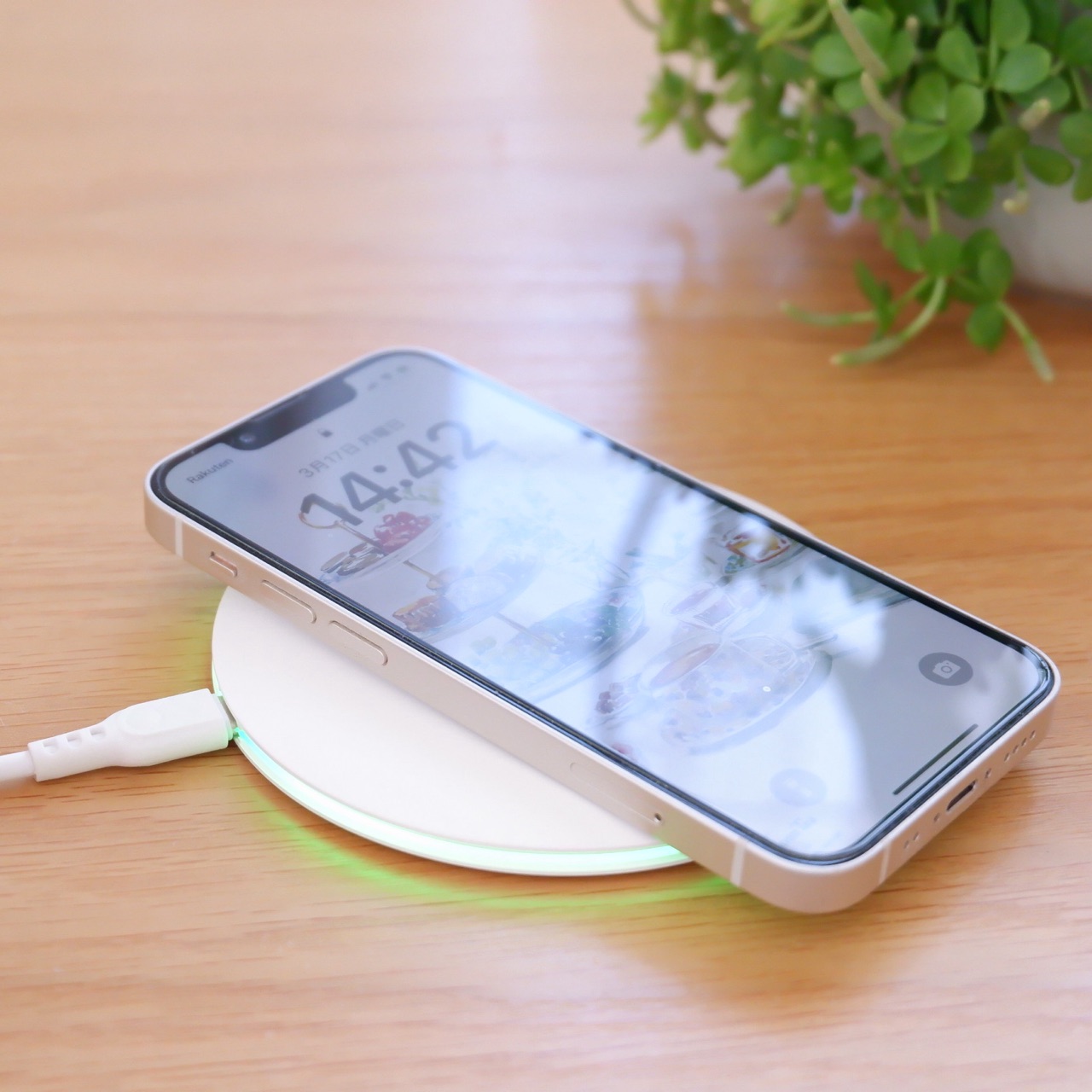 このワイヤレス充電機を玄関に置いて