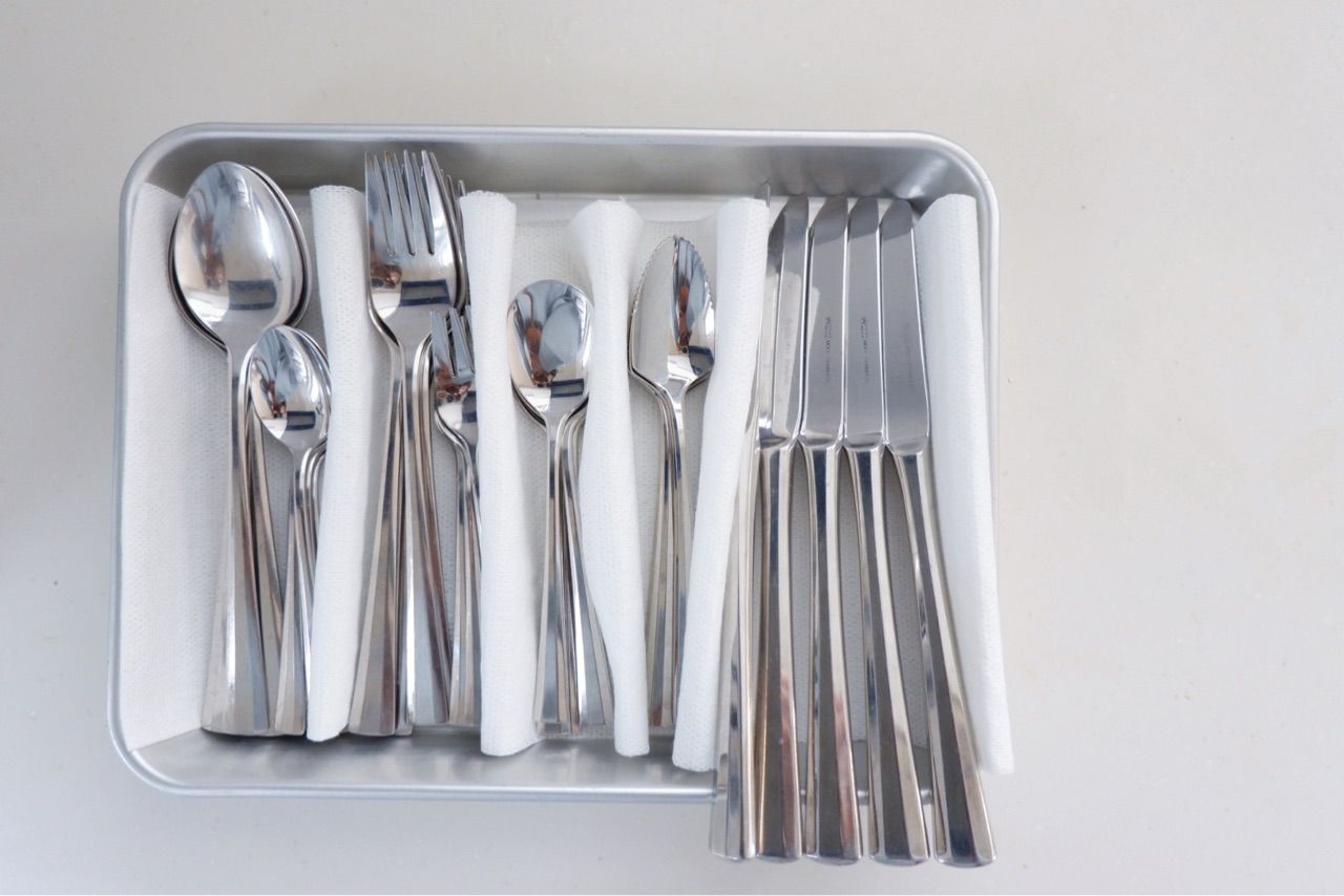中でカトラリーがずれないようにダスターを敷いて収納していました。