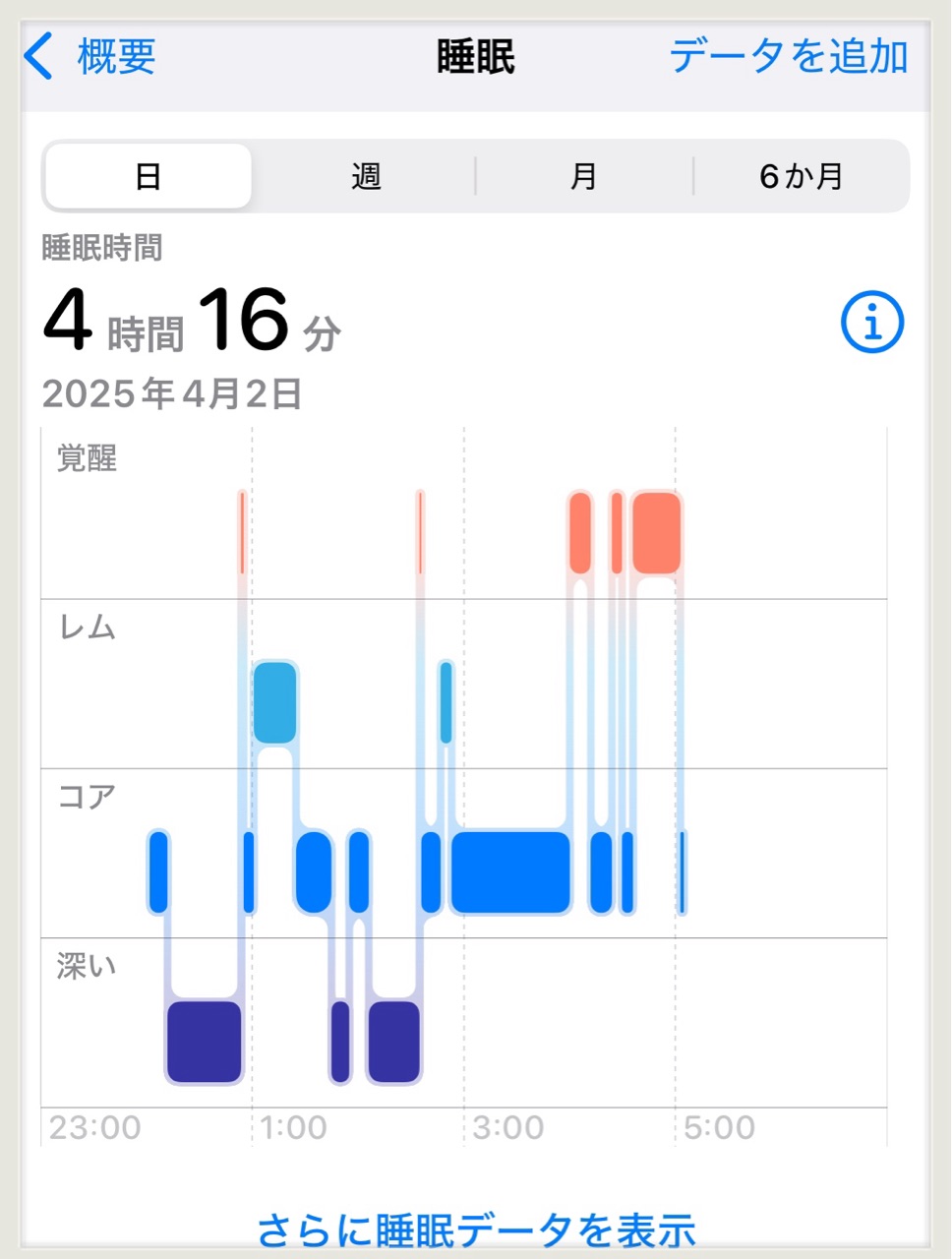 Apple Watchでは、睡眠4時間だと異常値としてお知らせがあります。