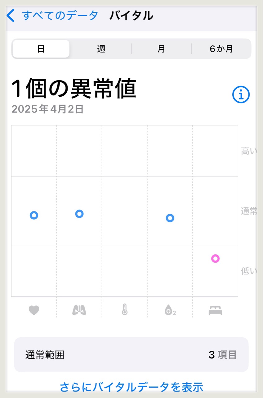 睡眠多過ぎてもダメで、8時間睡眠の時も異常値となります。(たまにある)