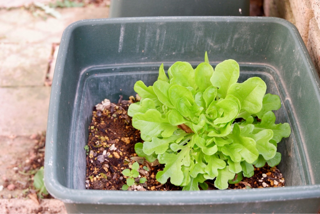 野菜が高かった冬に買った、水耕栽培のリーフの根本を埋めたら
