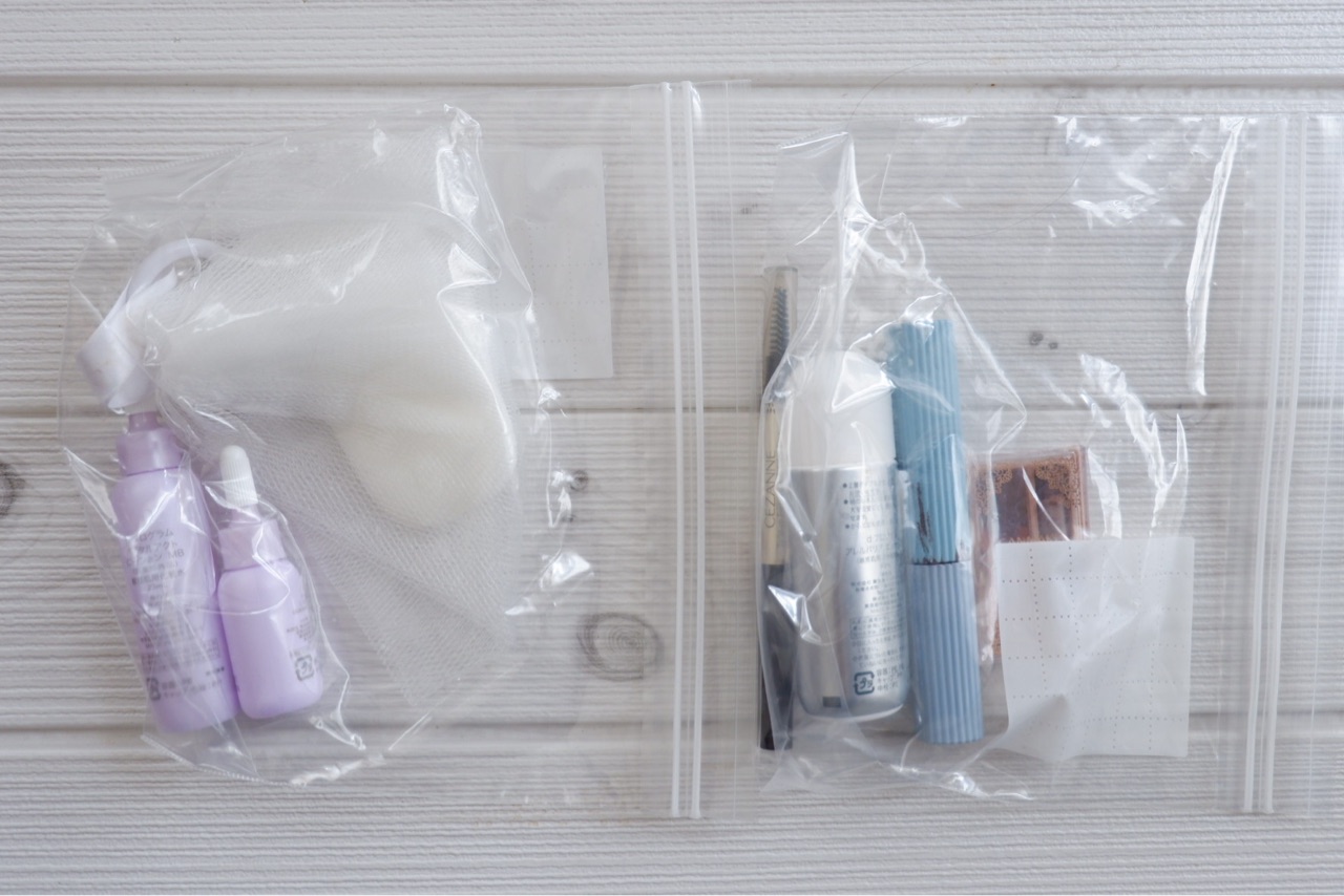 左が、スキンケア(化粧水、乳液、石鹸、石鹸泡立て)